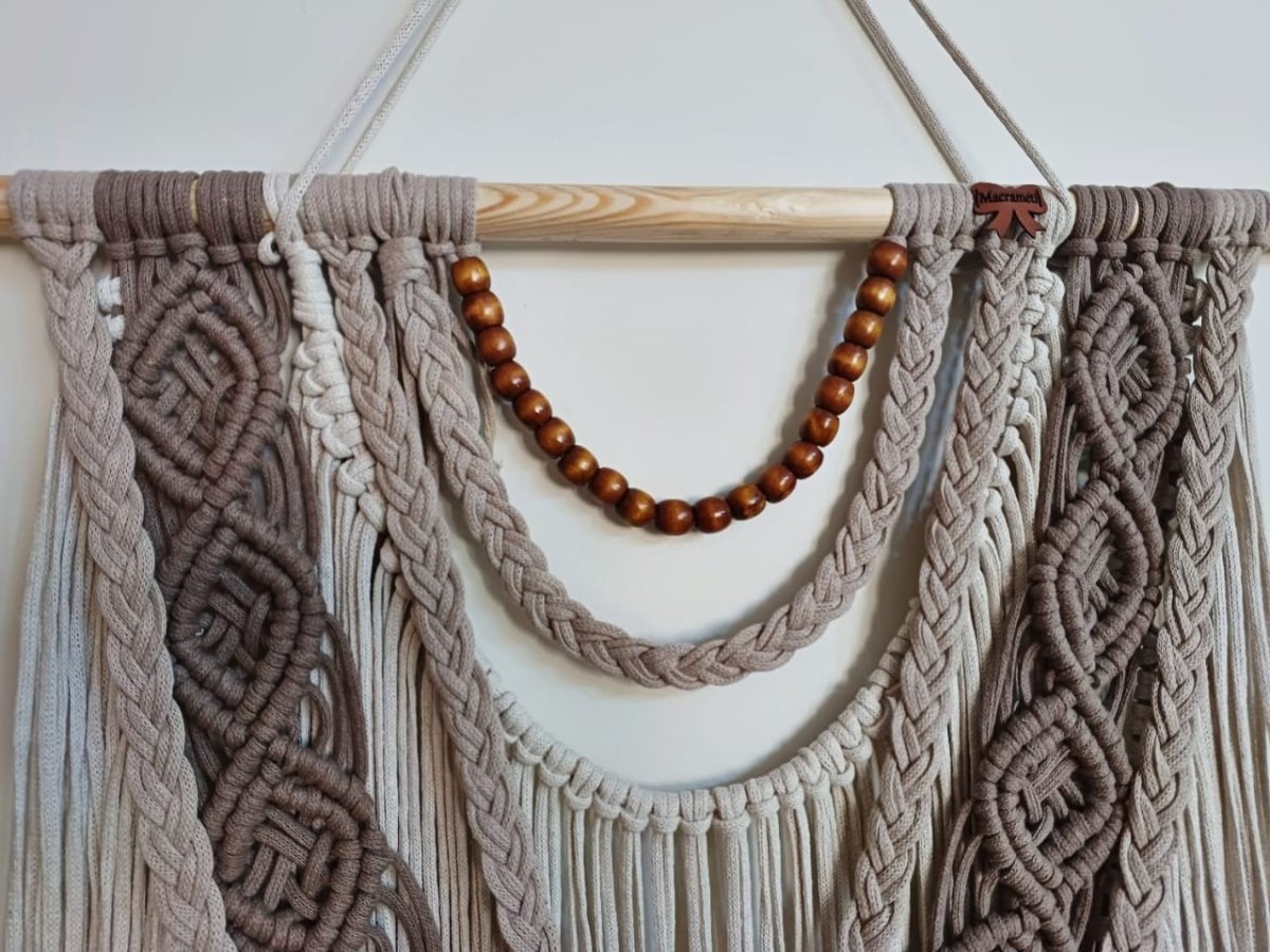 Macramé is a sophisticated style and modern decor for every home... At Macramé, we offer murals and curtains with high-quality cotton macrame threads in all sizes and hangings with wooden shelves.