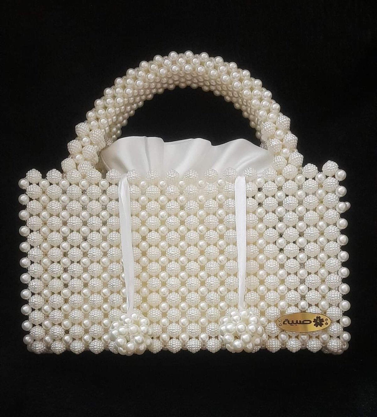 Bag of lollipops and sugar beads Lined from the inside with satin It has a gold or silver chain arm.