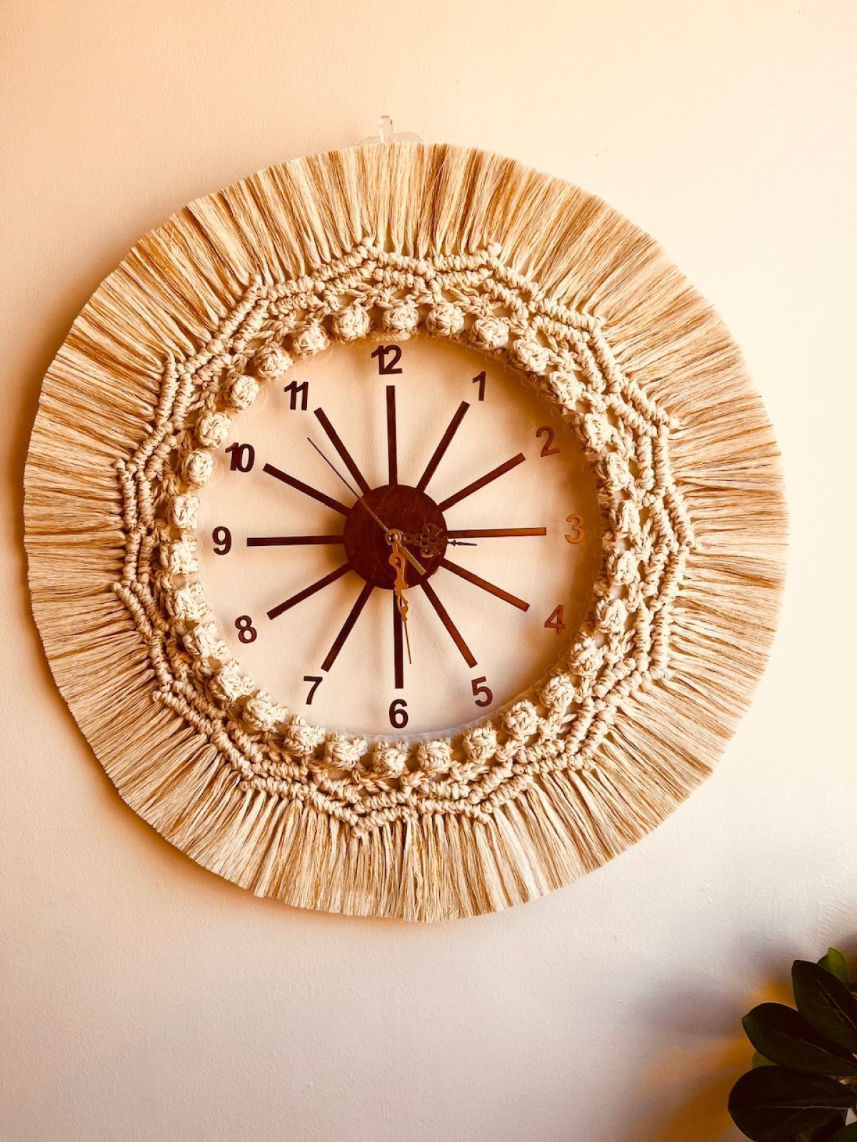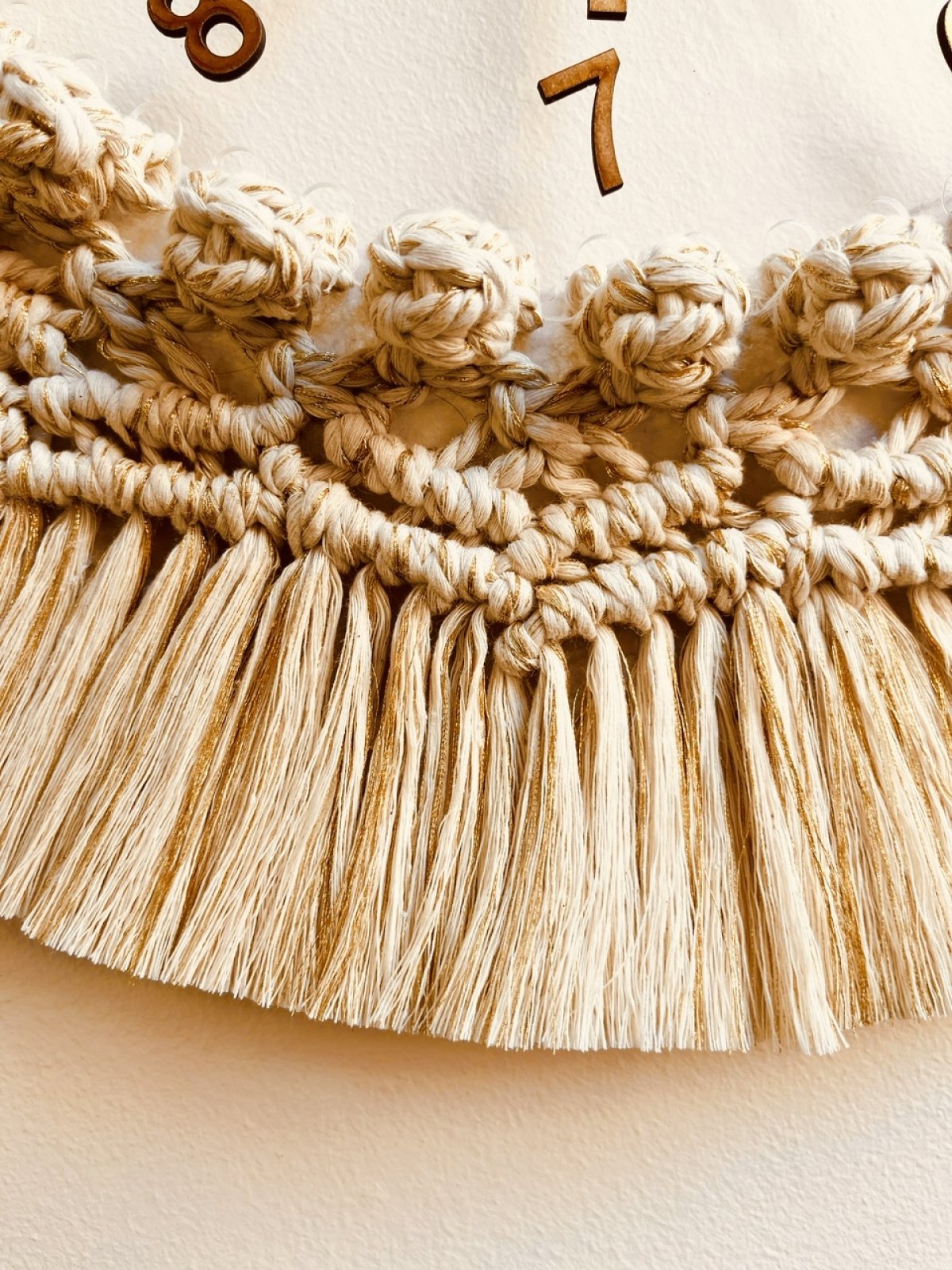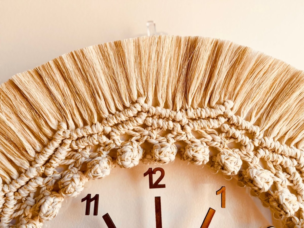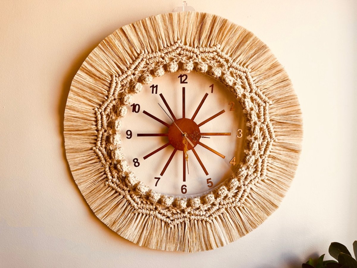 Wall clock with macrame frame