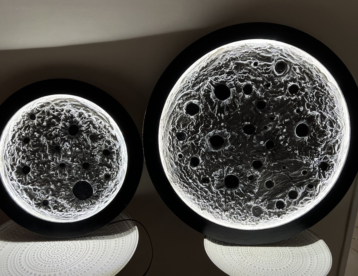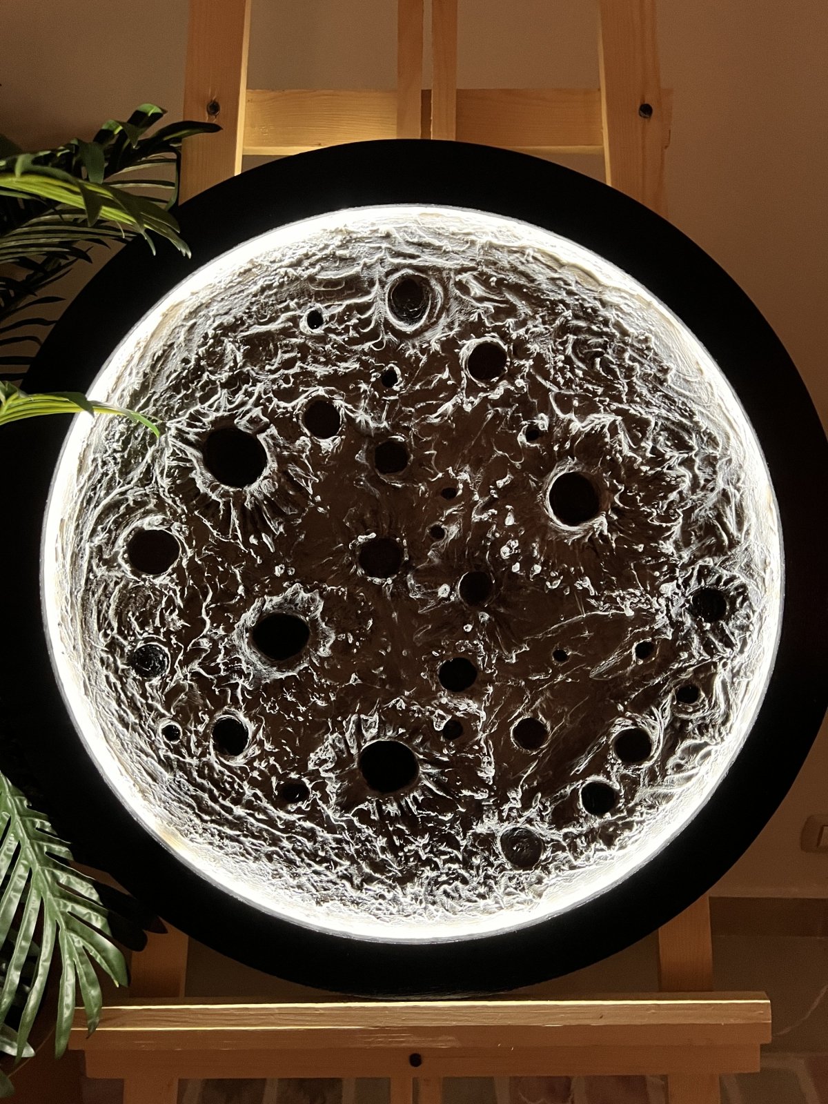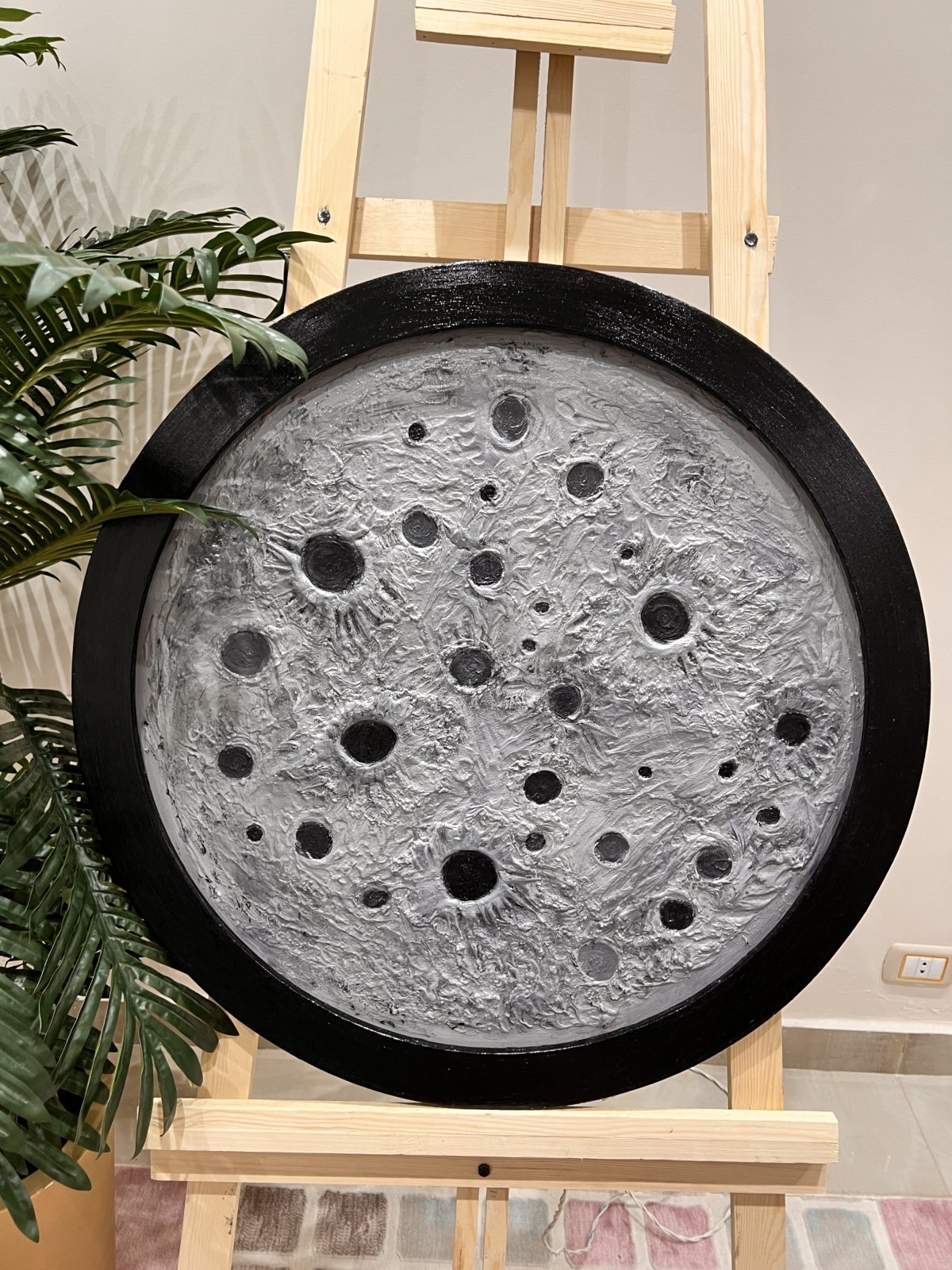 Bright Moon made by Wooden material with prominent texture of paste 🌙and Acrylic colors , Size 70 cm but you can order any size you want.