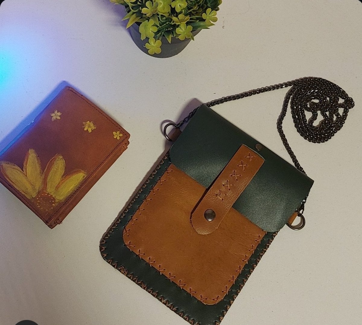 A handmade crossbody bag made of genuine leather for mobile phones is a unique piece that combines functionality and elegance. It is often designed to fit the size of a mobile phone and may include a small pocket for other accessories such as cards or cash. The genuine leather gives it durability and a luxurious touch, making it perfect for everyday use or casual occasions.