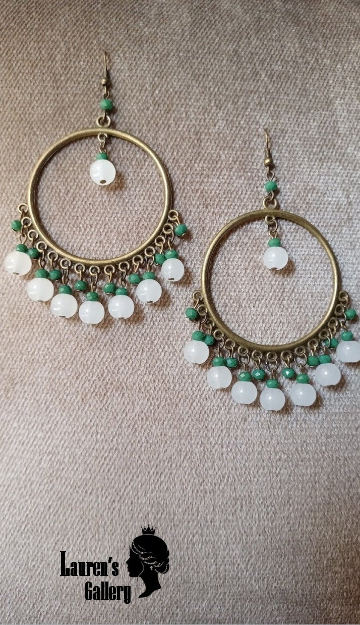 Earrings have a crystal and alabaster stone.