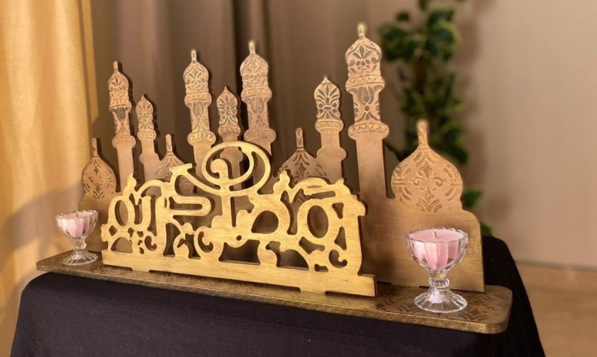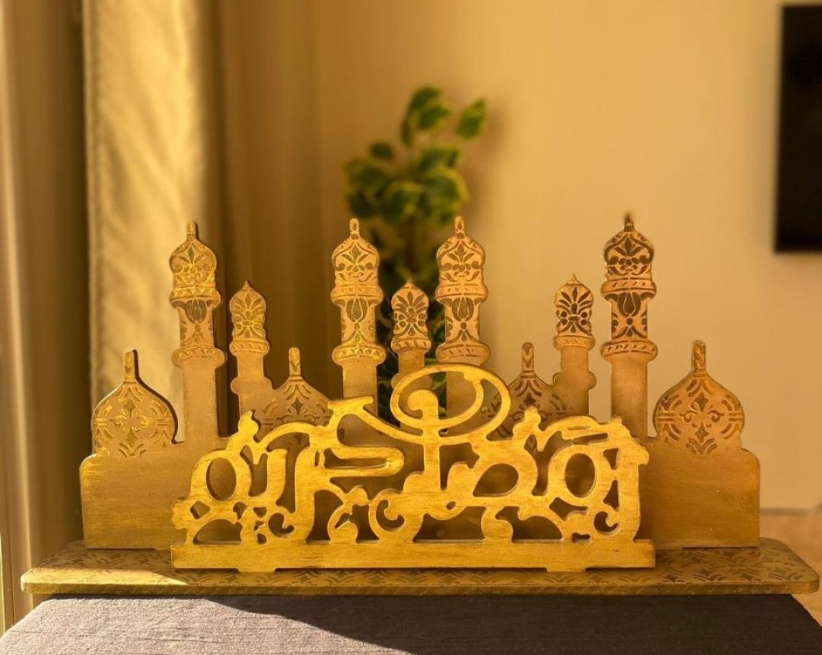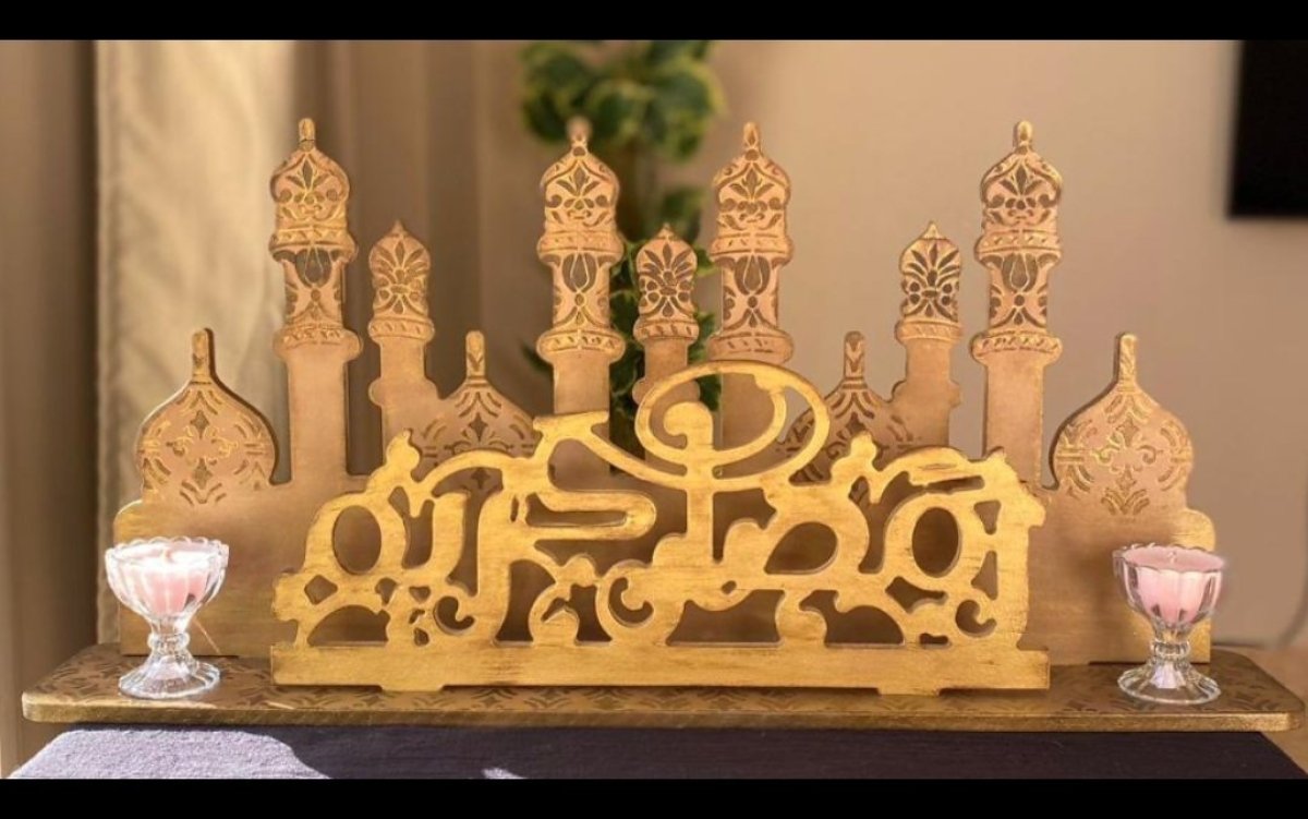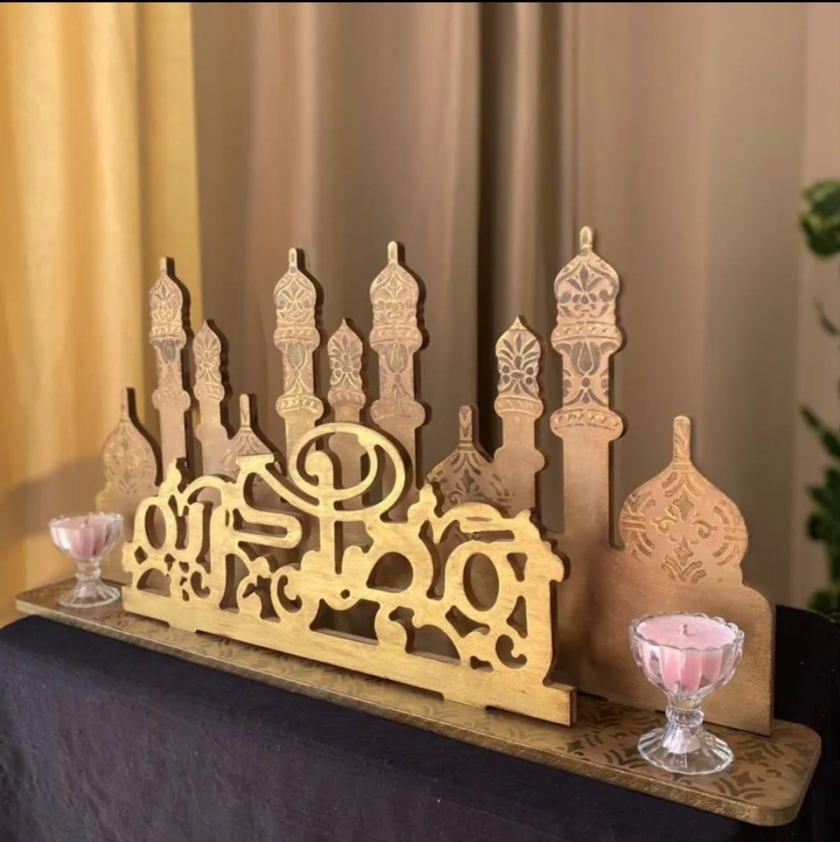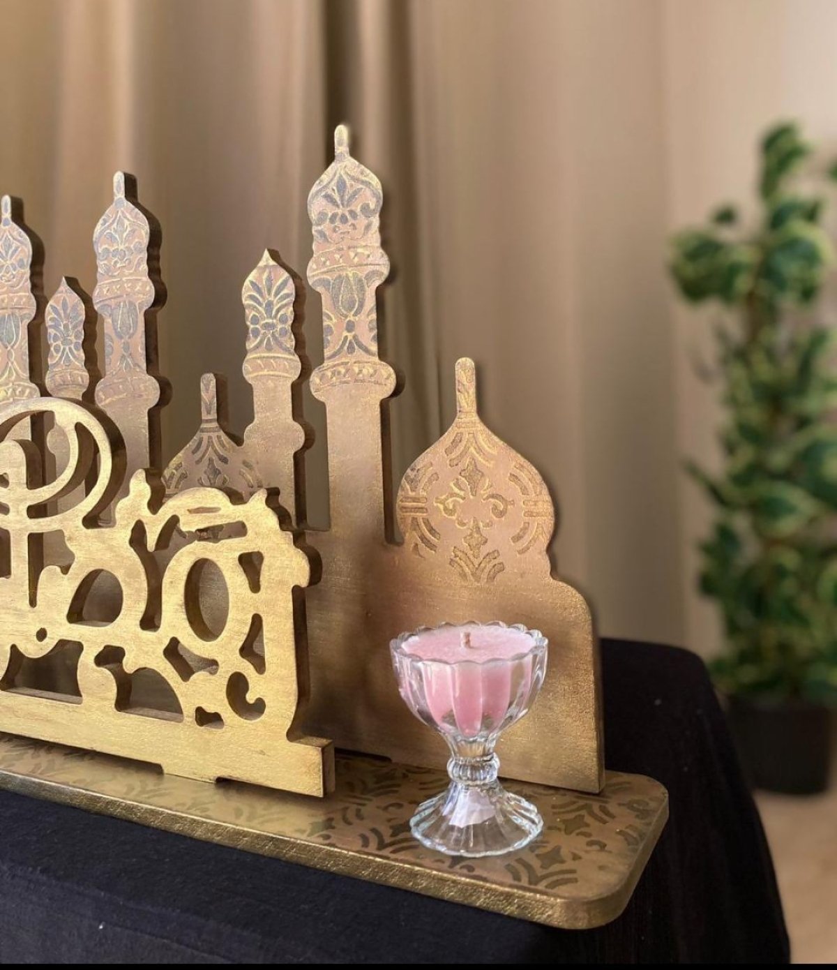 Ramadan Kareem decor stand, a distinctive piece with attractive colors suitable for most styles of furniture. The piece can be disassembled and assembled for easy storage. The piece is sold without the scented wax, and you can get the natural scented wax at a good discount.