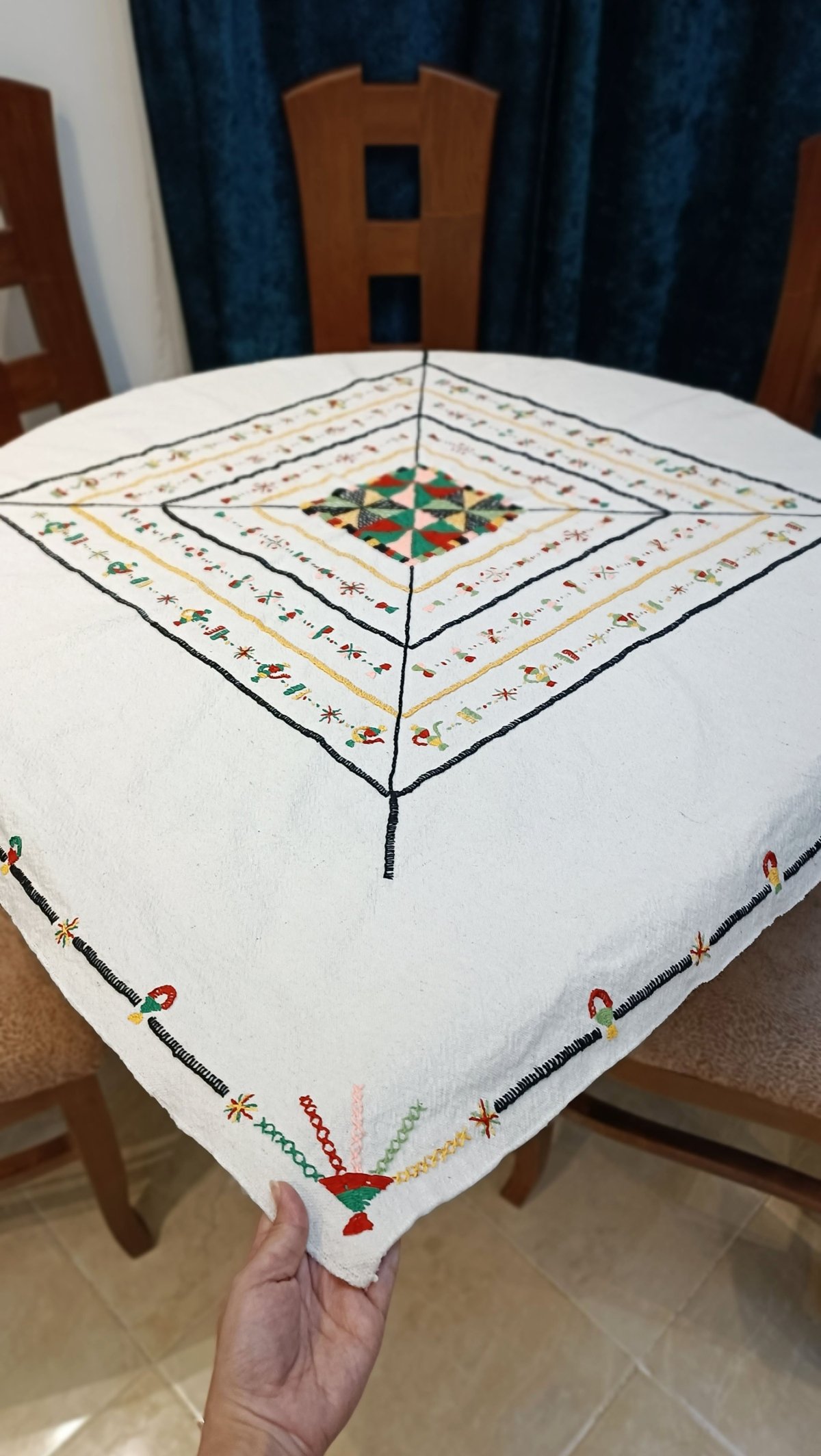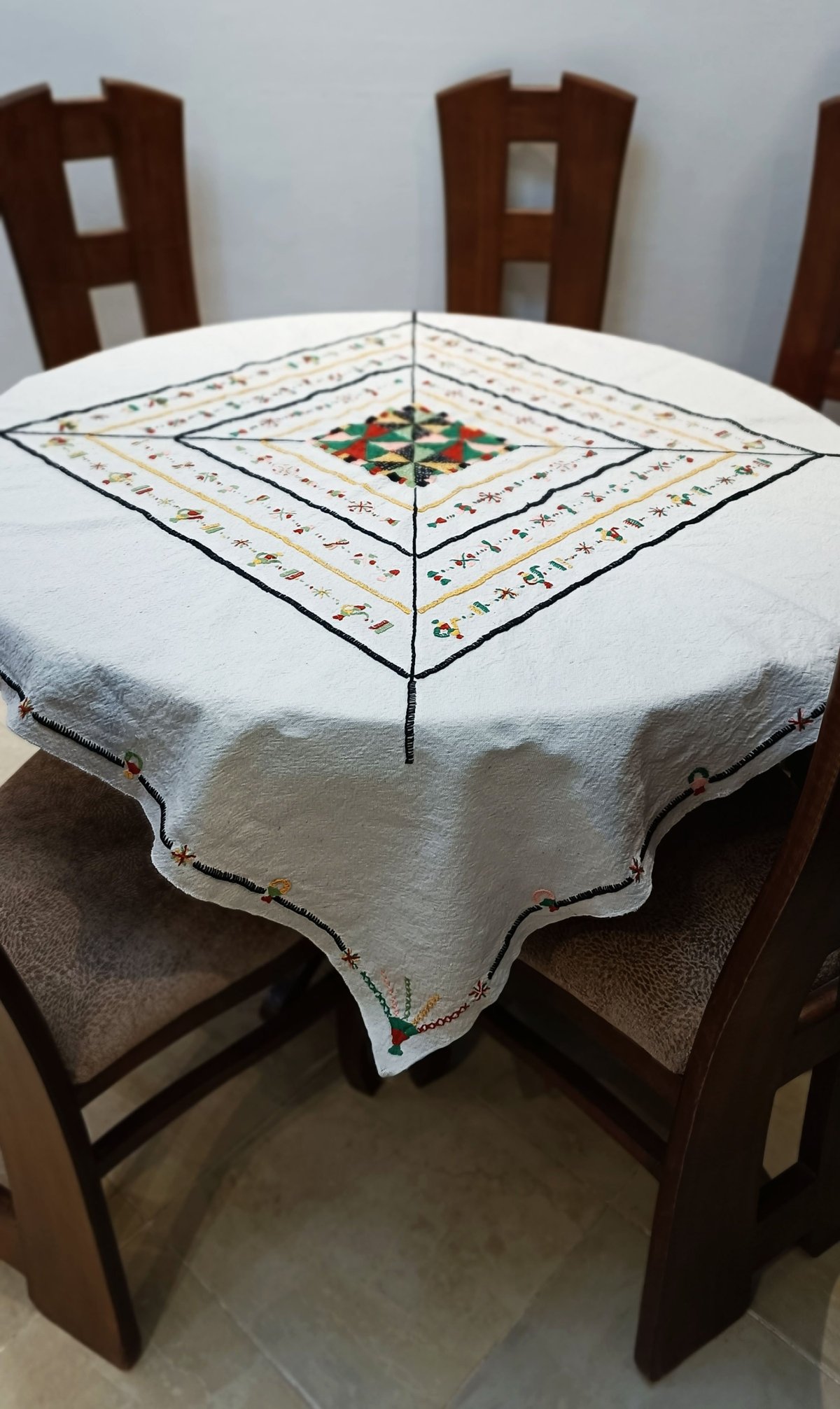 Unique Handmade embroidery square Tablecloth made in Siwa oasis.