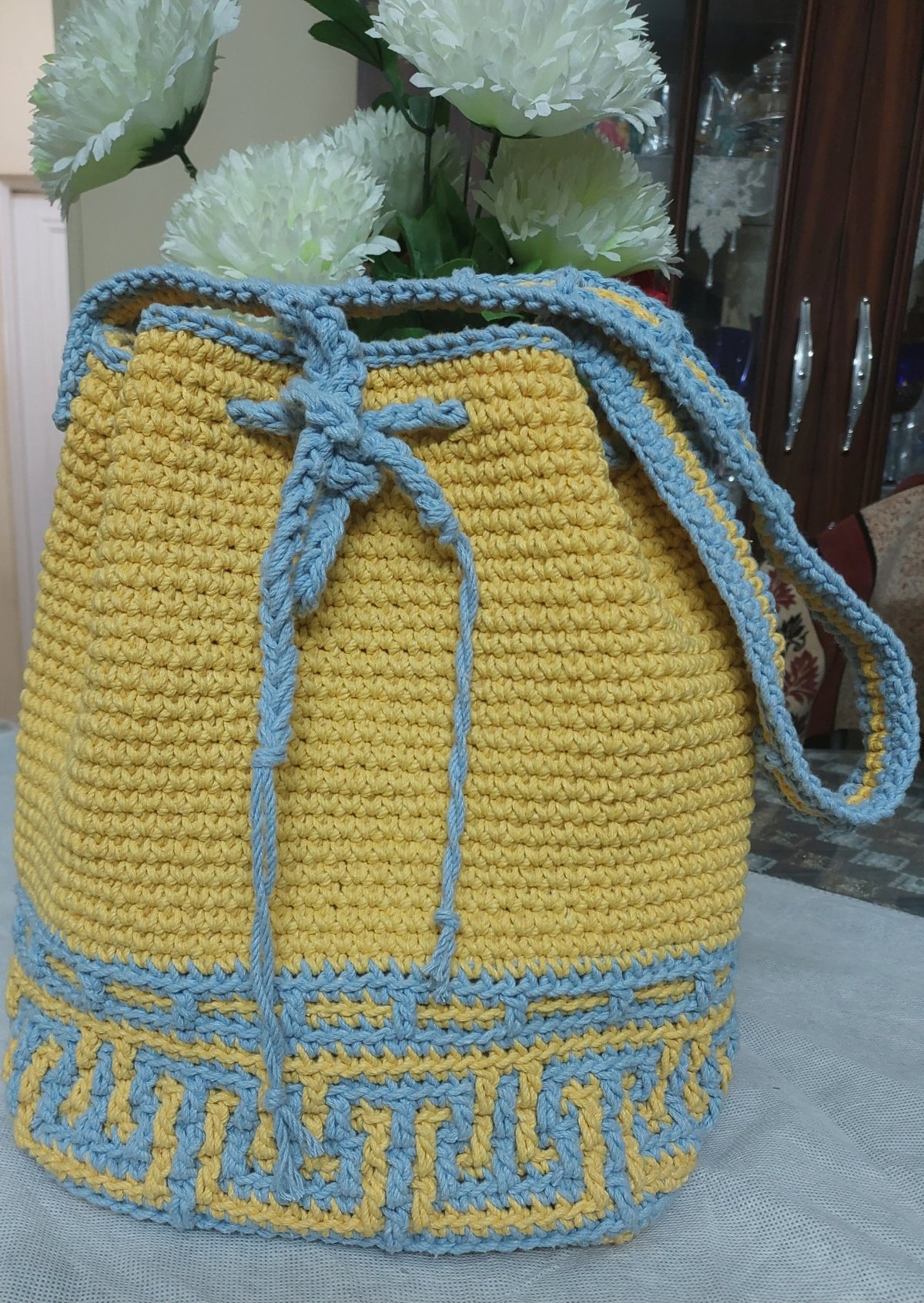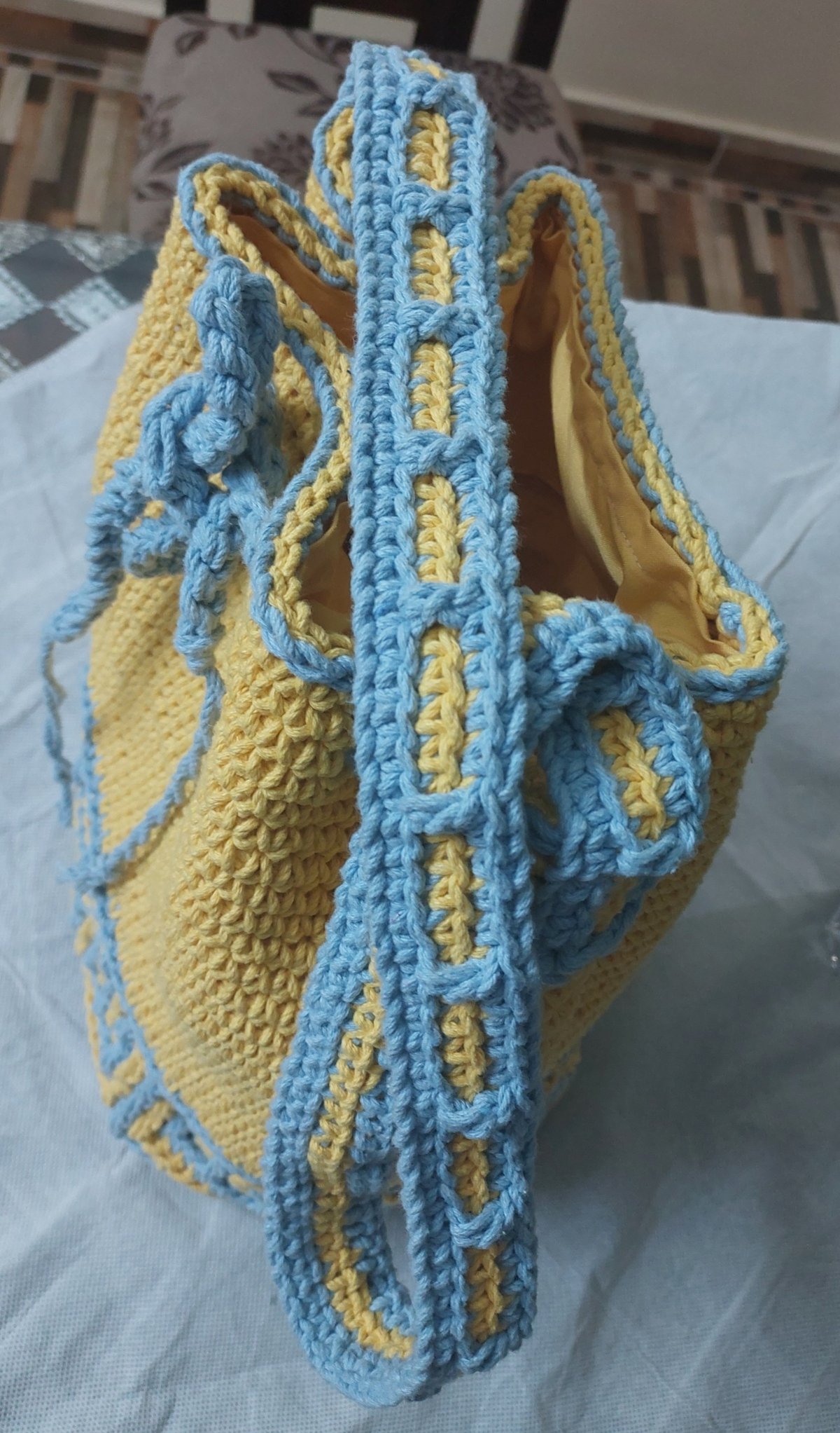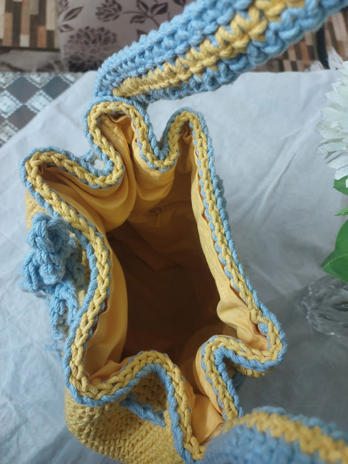🔸️ Material: Turkish cotton thread, thread pullers, and a base made of thread, and the base is also supported with a bow, and a handle in the bag is a shoulder made of mosaics, the same design as the body of the bag 💪🏻, lining from the inside is cotton with an internal zipper, the body of the bag is made of mosaics 😉😉.