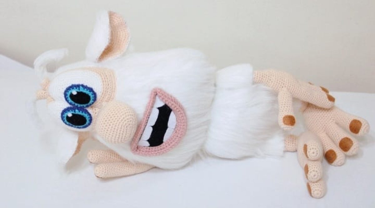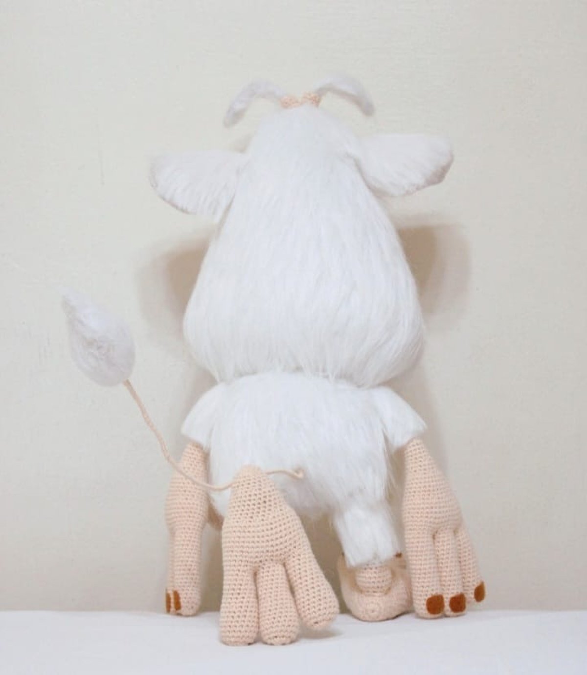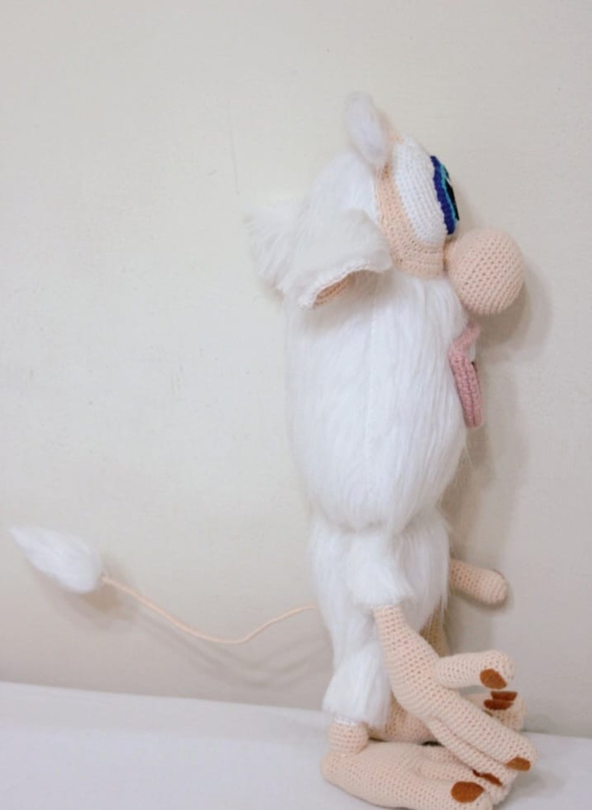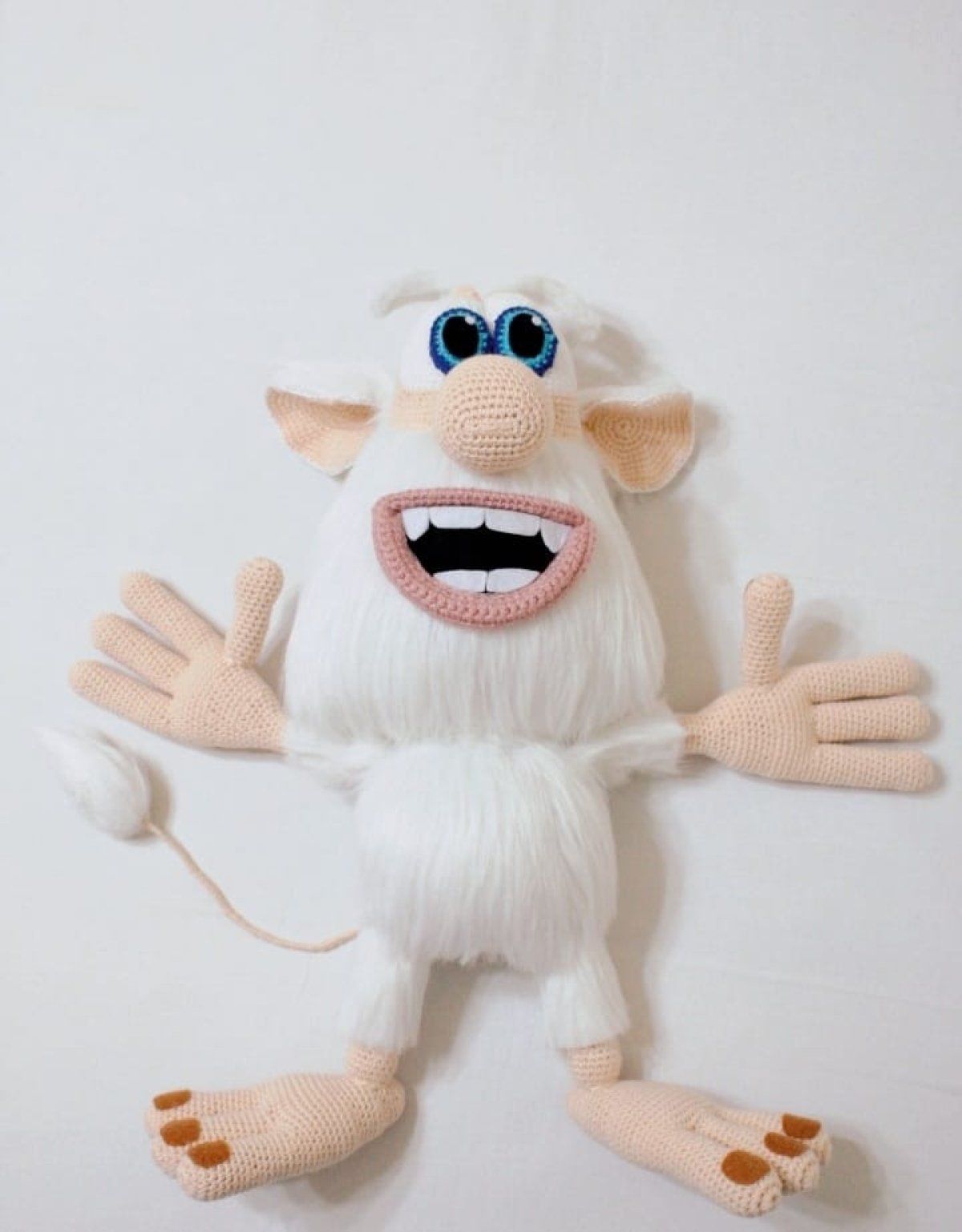 Bouba made of fur fabric, cotton thread and wire, 50 cm long.