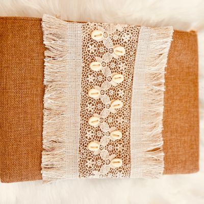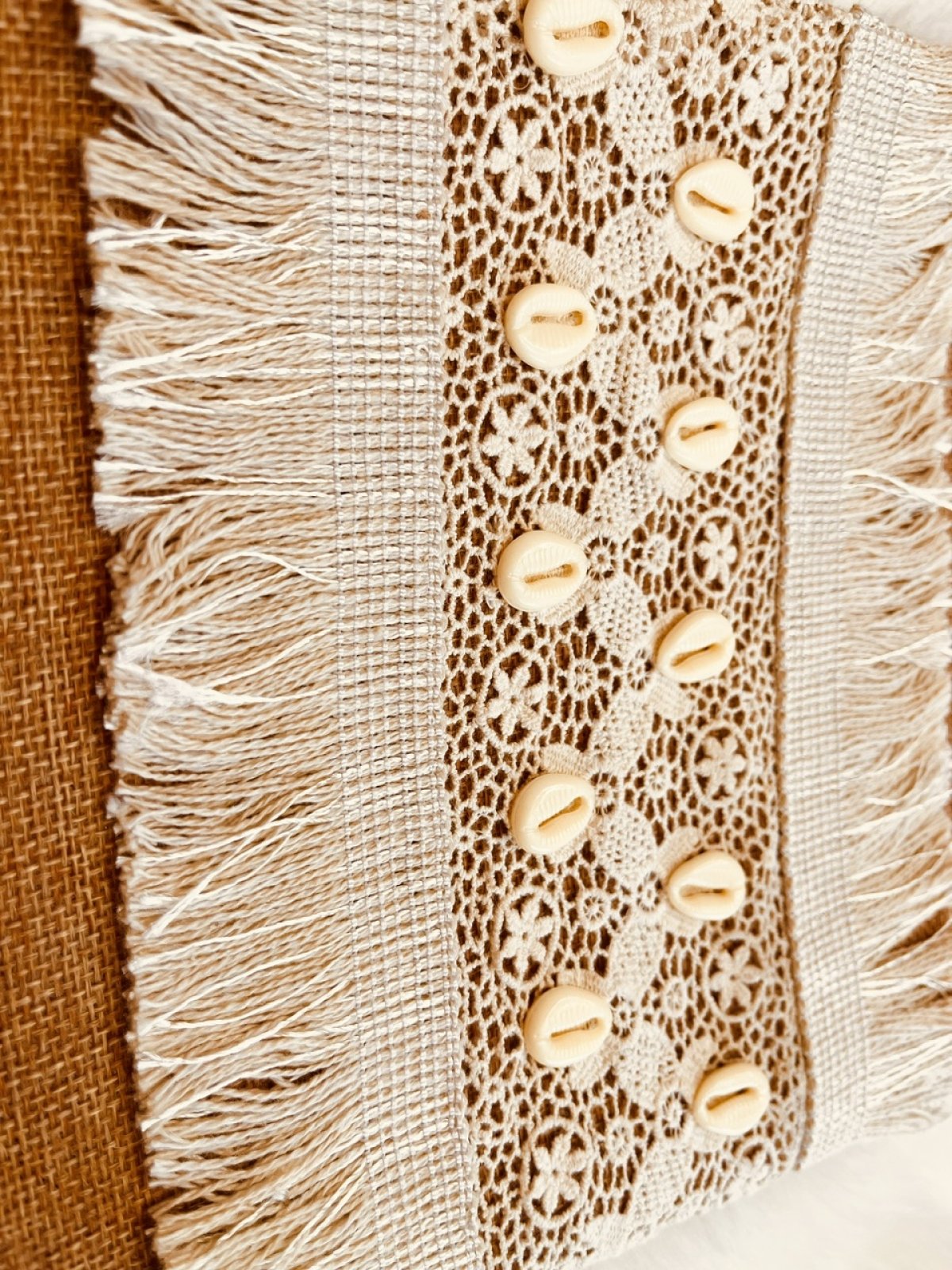 This elegant bag combines simplicity and elegance with its unique design. Made of luxurious brown fabric, it is decorated with a piece of white lace decorated with natural shells, giving it a charming nautical touch. Tasseled edges add a touch of liveliness and distinction. Perfect for your daily or evening looks, as it combines practical beauty with striking elegance.