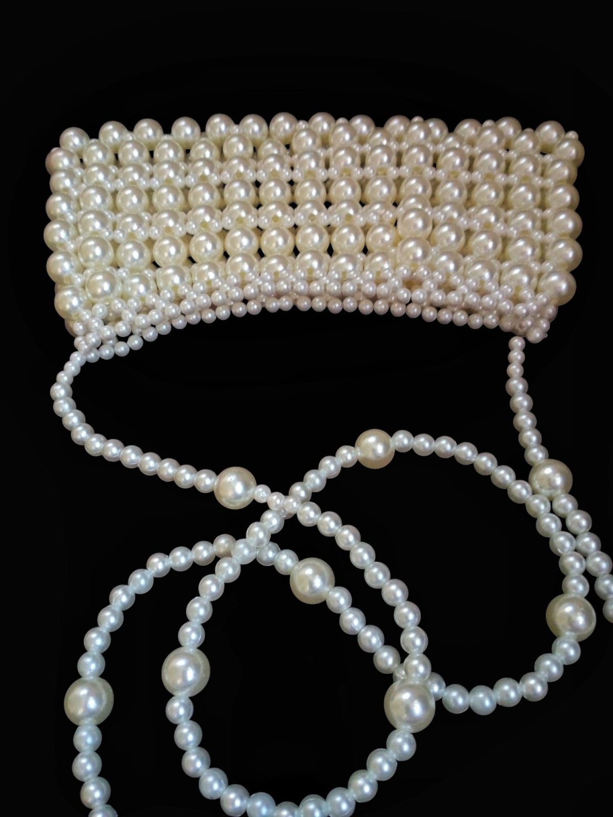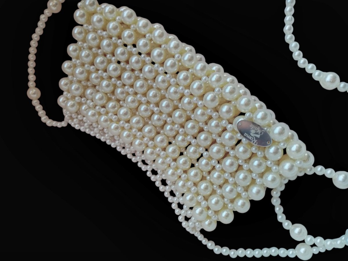 Women's bag made of shiny ccb pearls with a cross handle made of lollipops, size 20x12