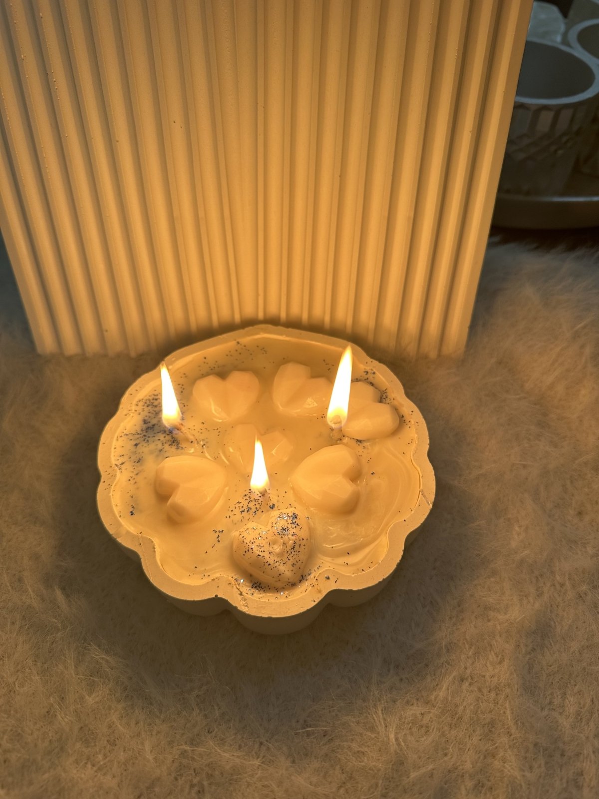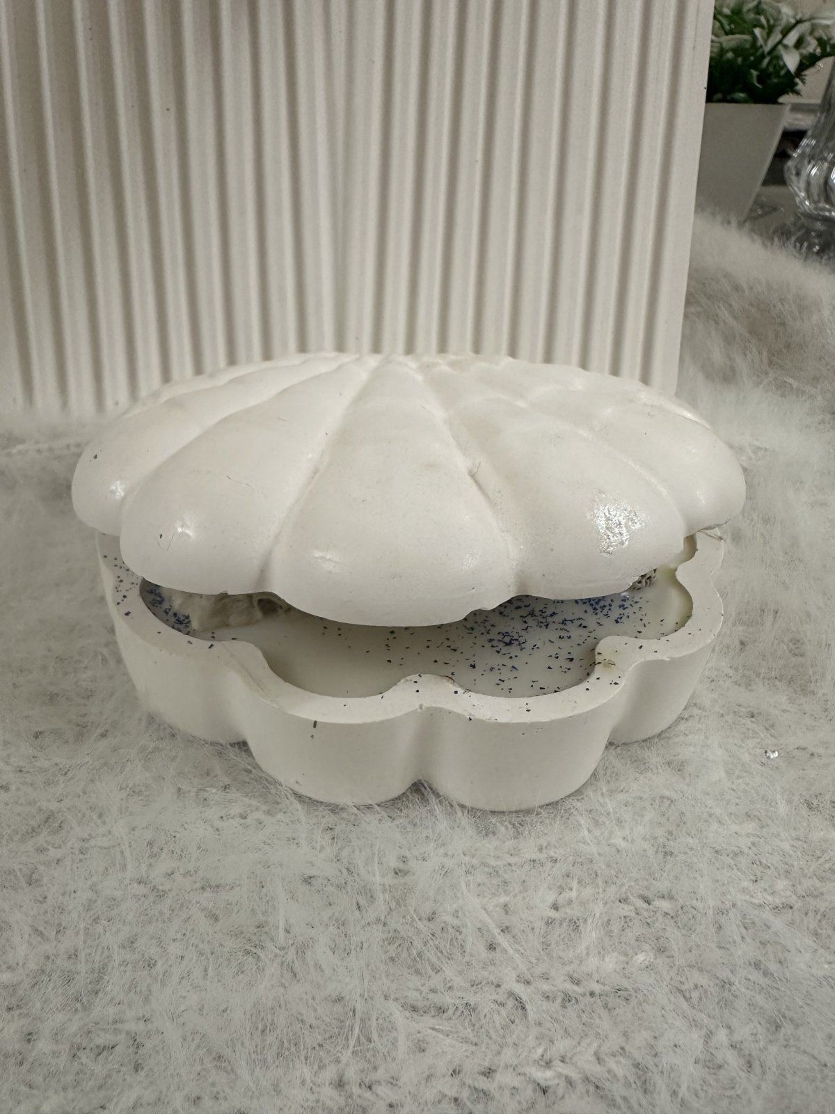 Shell candle made of concrete and decorated with natural shells, filled with soy and palm wax, and the fragrance is available to change.