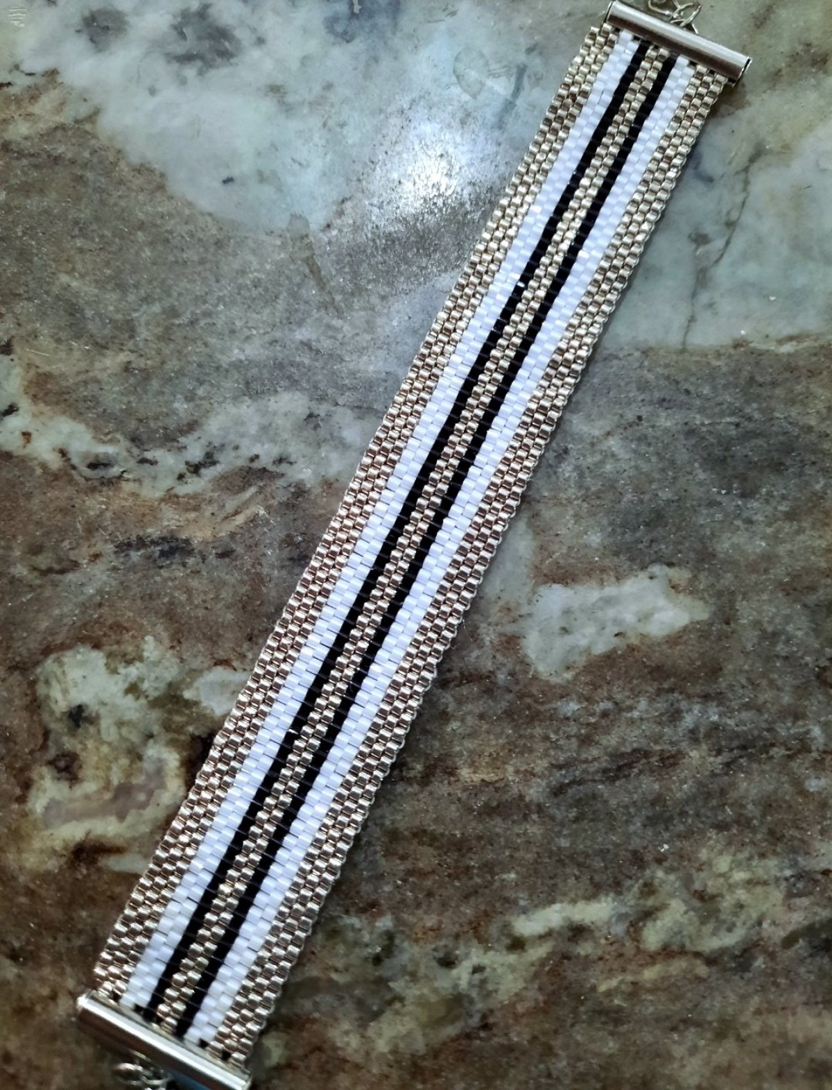 Set of black and white parallel lines of Miyuki beads