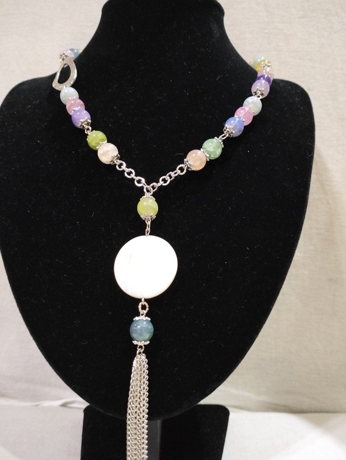 Agate alternative stone necklace, color, studded with stone pandant, 42 cm long