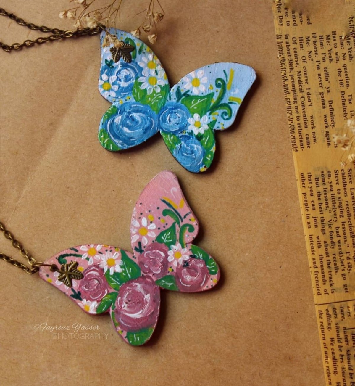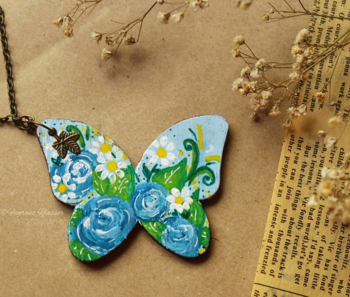 - Hand painted wooden butterfly necklace.