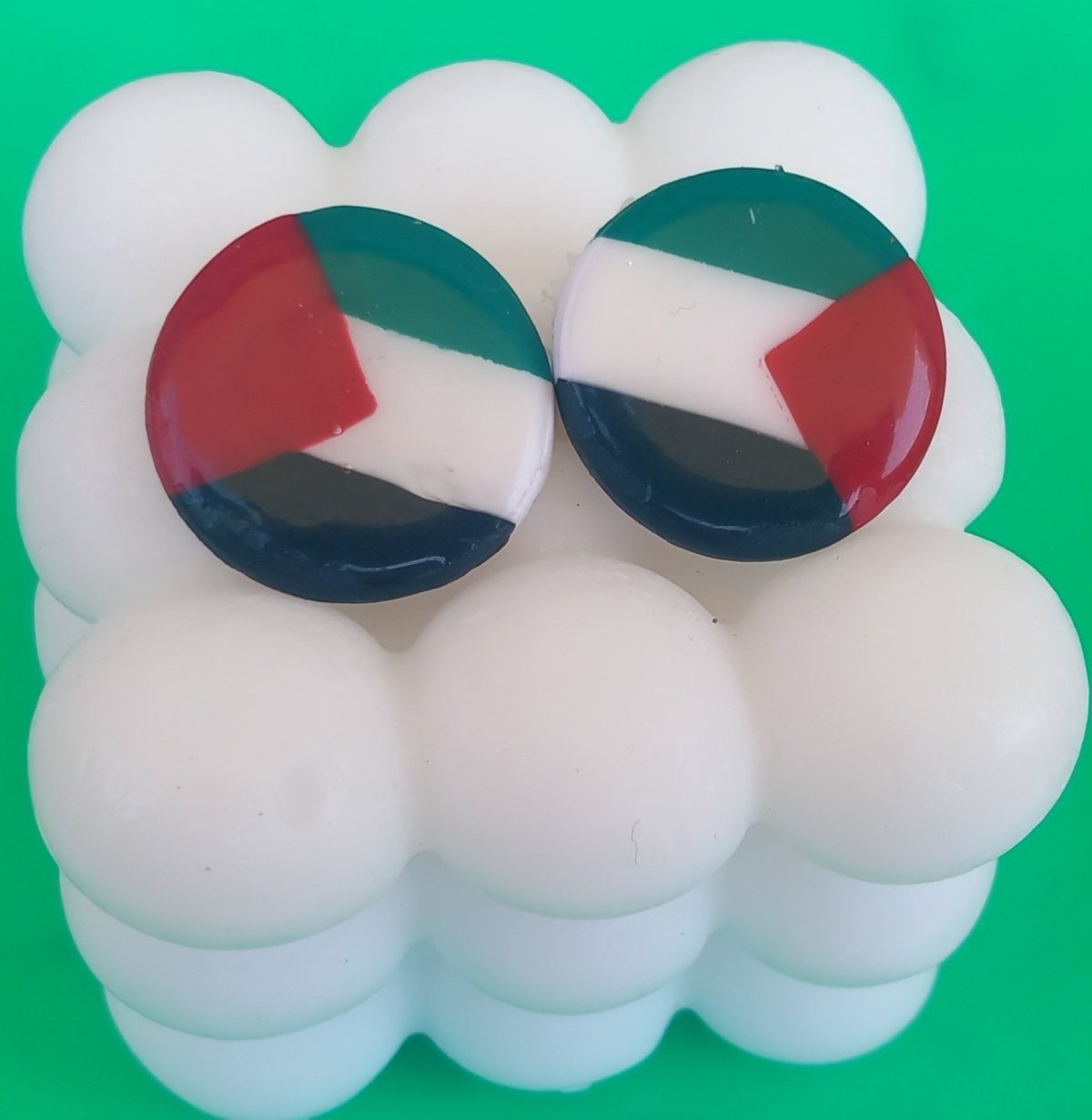Free Palestine earring 🇵🇸 is made from polymer clay with a resin layer for protection and a shiny look ✨️. Size (2.5 cm )