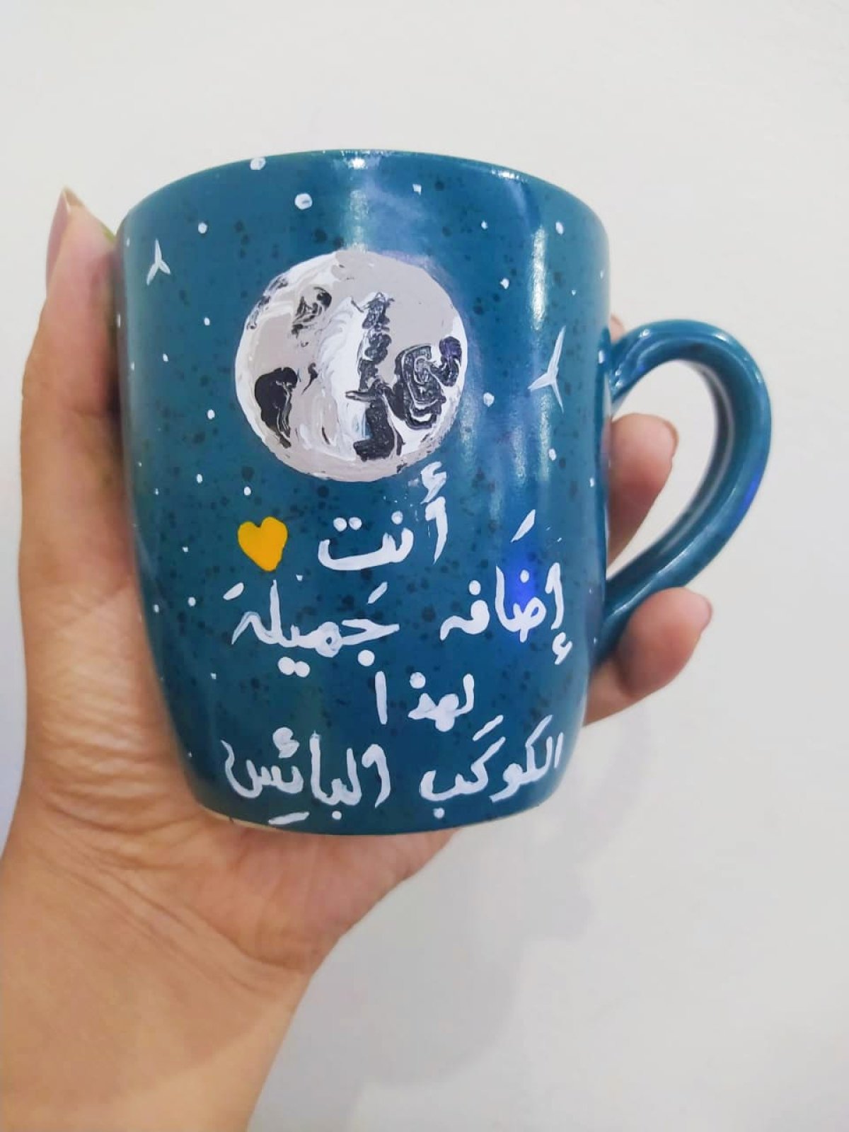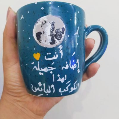Hand-painted mug with porcelain colors, specially made, safe for eating and drinking
