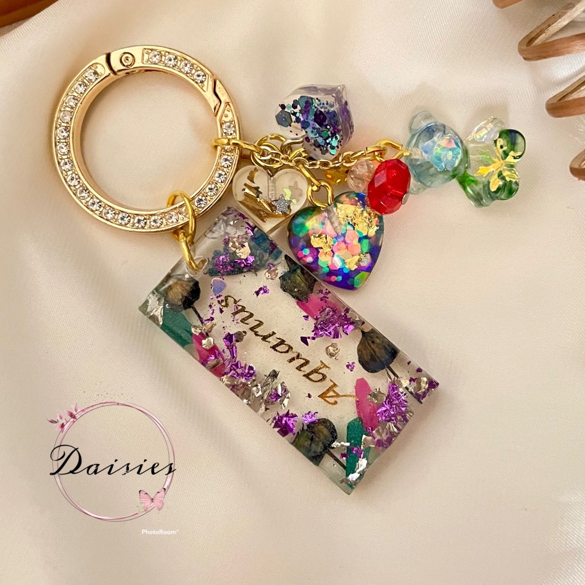 Resin keychain with your horoscope name, the key ring made of Chinese gold