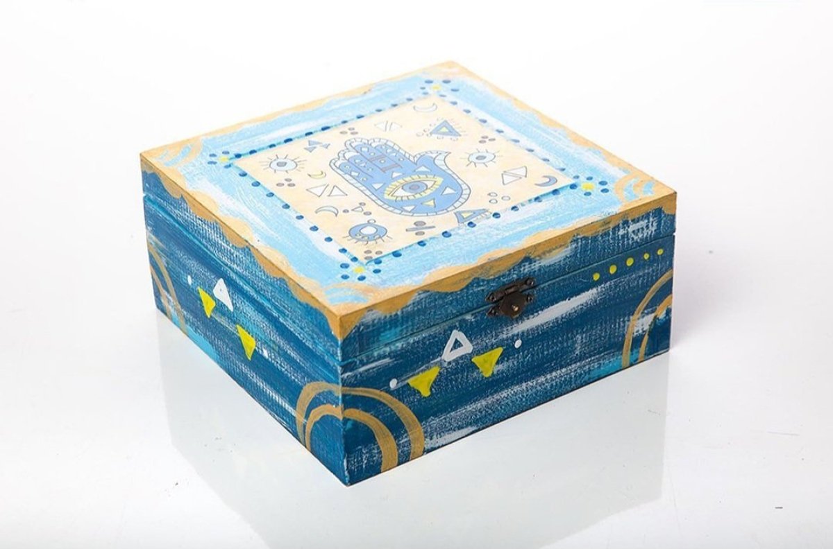 Tea box made of wood and fixed oil colors with an insulating layer with a sophisticated hand-drawn heritage design, size 20*20