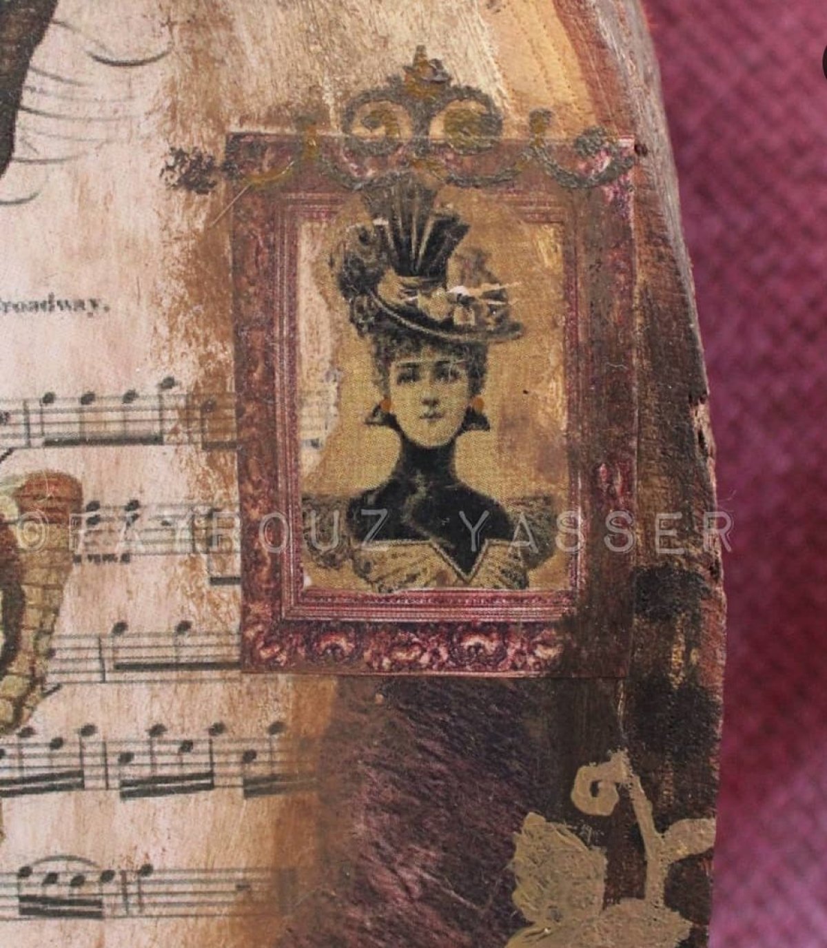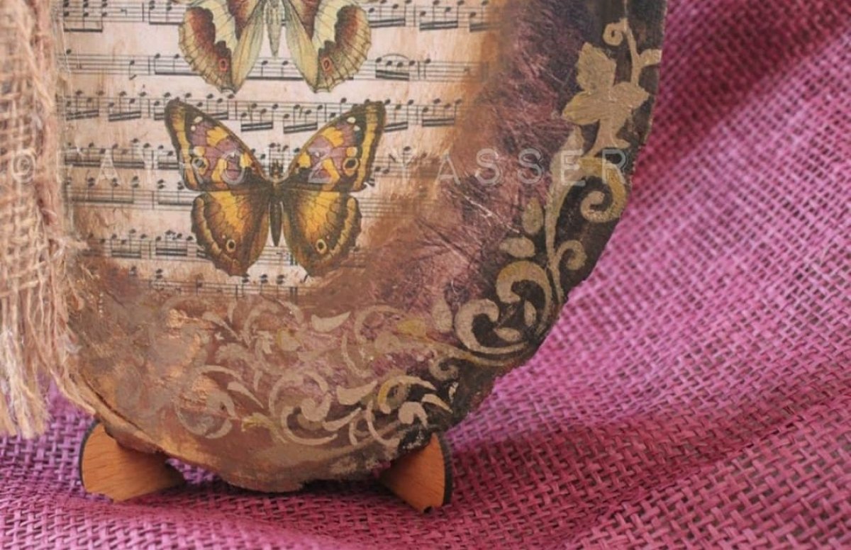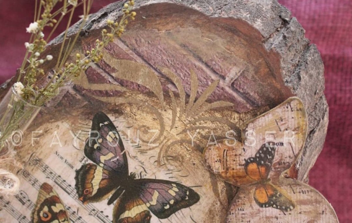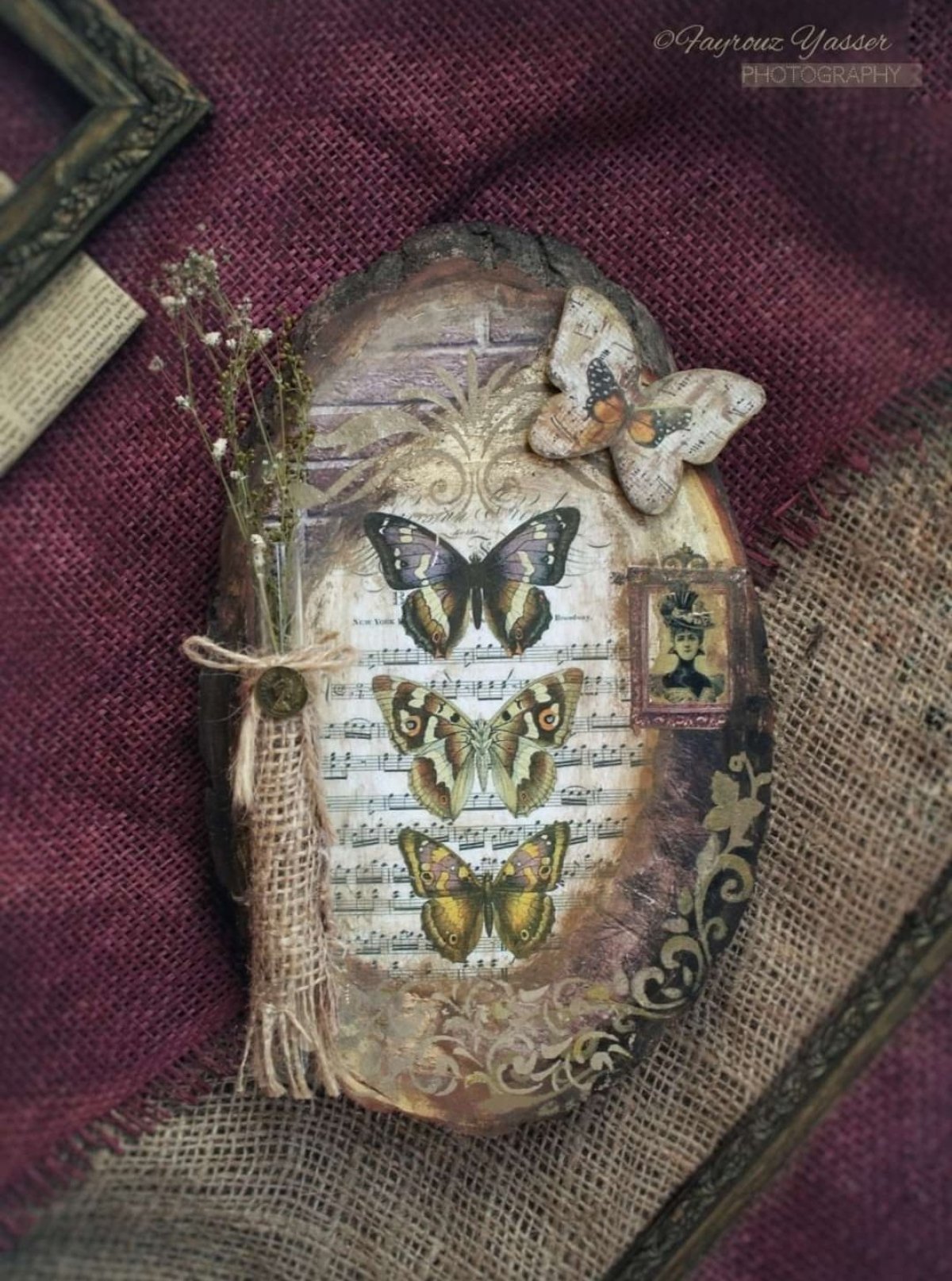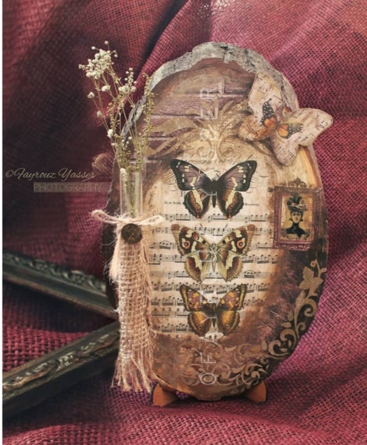 - Decoupage on natural wooden slice - Size 25 * 15 cm