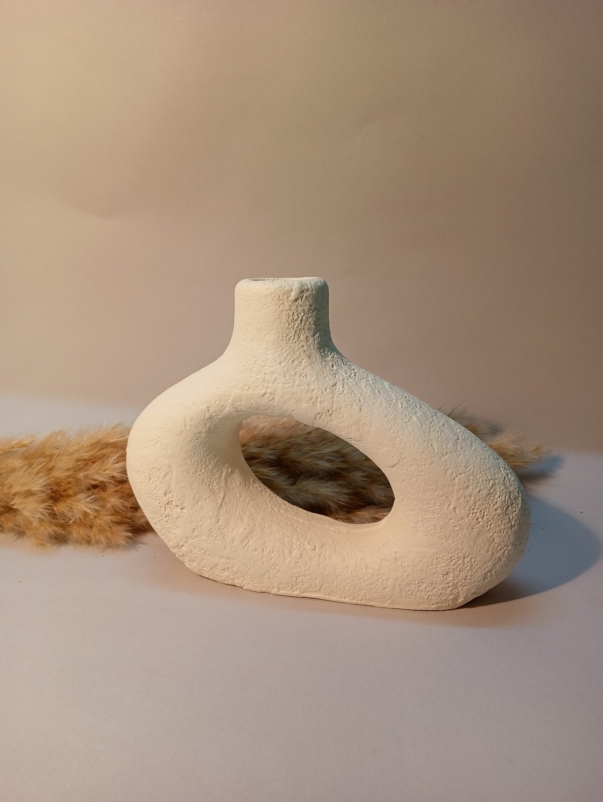 Modern vase with stone technique, 13 cm long and 15 cm wide, in cream colour, insulated with wax insulation
