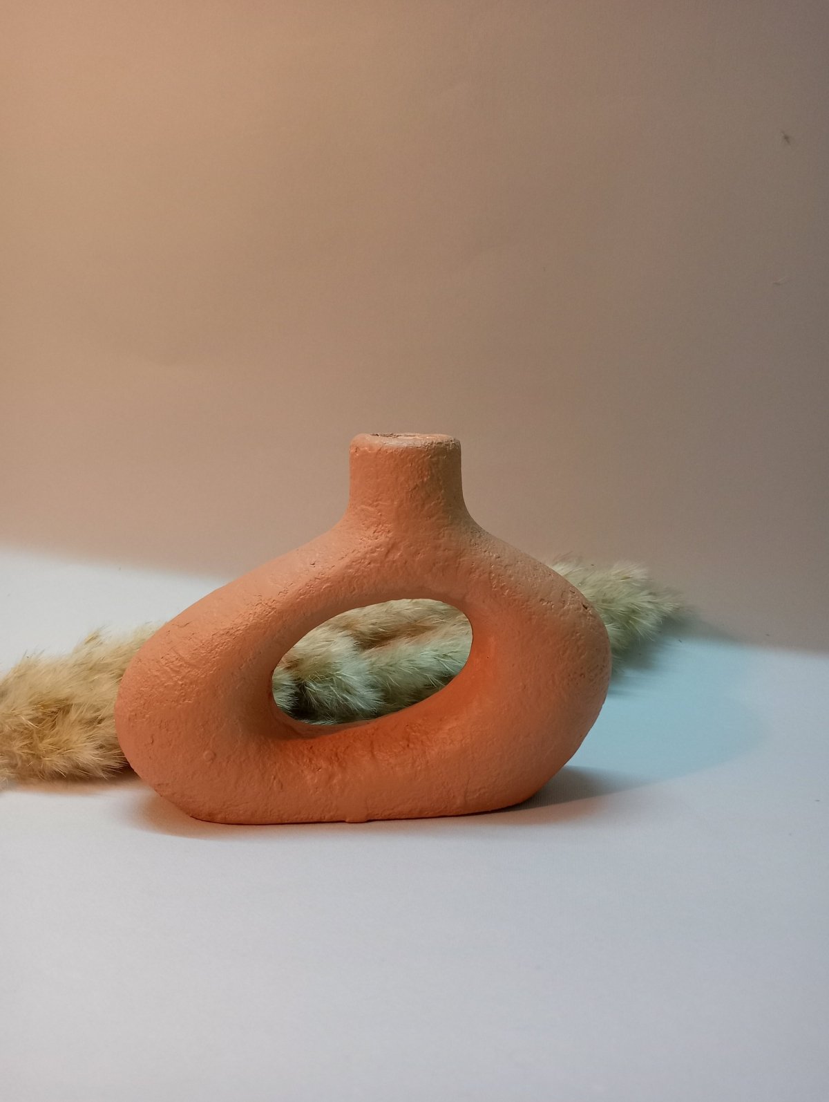 Stone technique vase, 13cm long and 15cm wide, terracotta colour, insulated with wax insulation