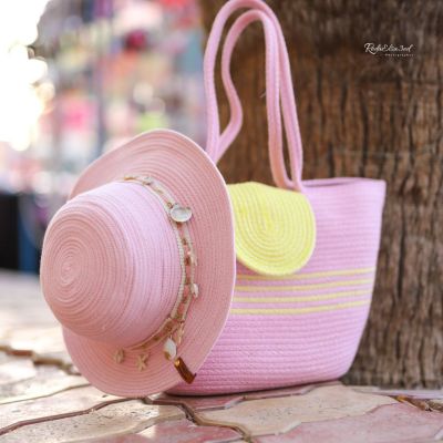 A very cute set in a lovely color, made from lightweight pure cotton ropes. The bag is medium-sized but can hold a lot of items, and the hat is made from soft cotton cord ropes that are gentle on the hair and won't cause allergies because it is 100% cotton.
