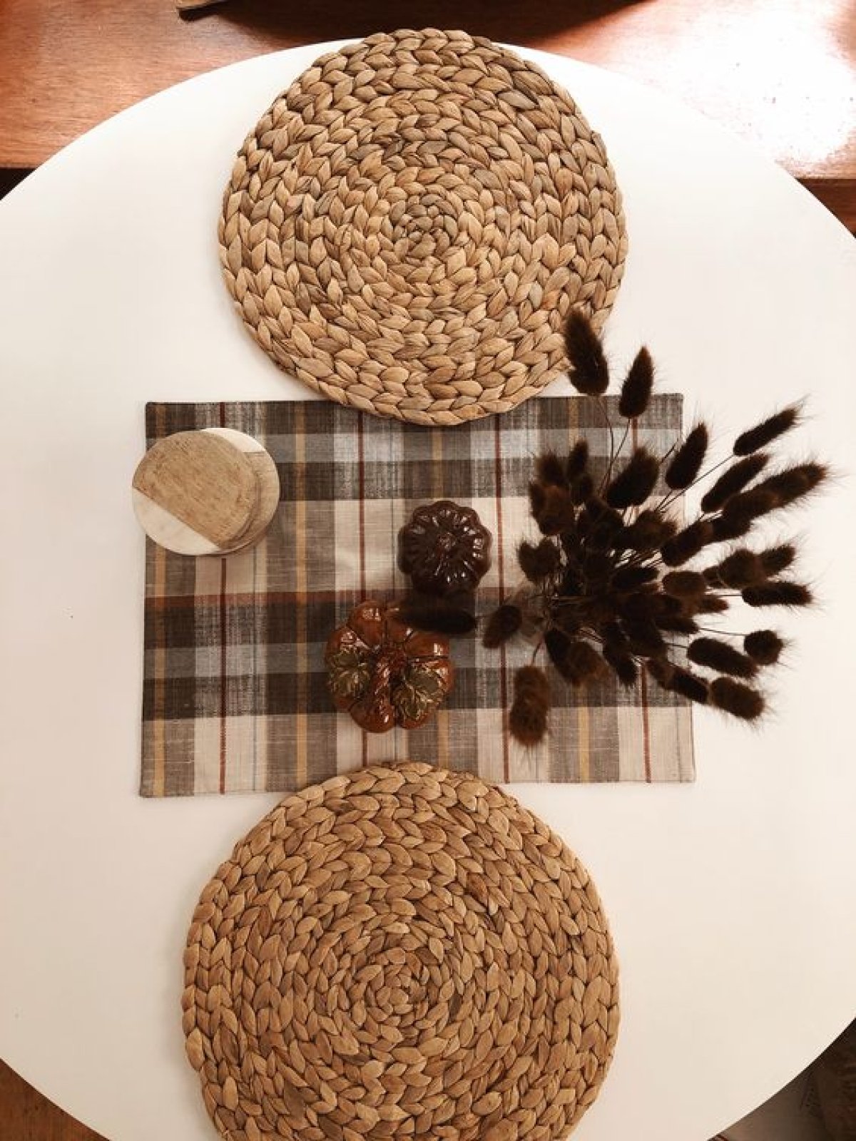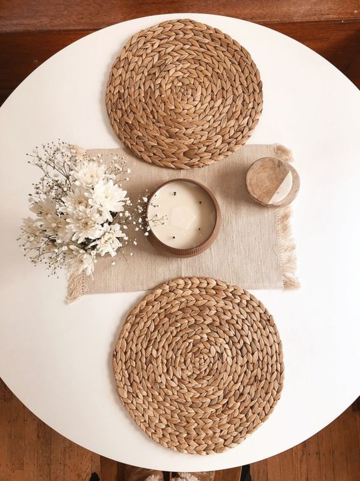 Add an elegant natural touch to your table while providing effective protection for your surfaces with the handcrafted natural rush plant coaster. Combining practical functionality with bohemian beauty, it brings a warm and inviting feel to your home. Key Features: 100% Handcrafted: Expertly woven from natural rush plant fibers. Elegant Circular Design: Attractive spiral pattern. Excellent Heat Insulation: Protects surfaces from heat. Durable and Practical: Heat-resistant and suitable for daily use. Perfect Thickness: Ensures protection and stability. Natural Look: Warm golden color that complements all décor styles. Ideal for Use With: Hot coffee and tea pots. Freshly cooked dishes. Hot trays and bowls. Cold drinks to protect surfaces from condensation. Decorative element when not in use. Additional Features: Stackable for space-saving. Easy to clean and maintain. Lightweight and easy to store. Eco-friendly and sustainable. Suitable for daily use. Care and Maintenance: Wipe with a dry or slightly damp cloth. Avoid submerging in water. Store in a dry place. Can be cleaned with a soft brush if needed.