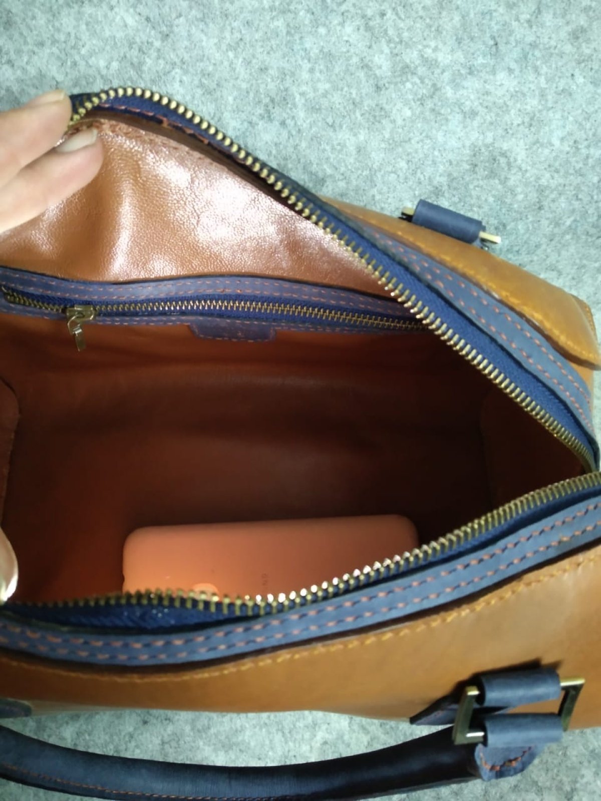 Havana genuine leather bag in navy blue