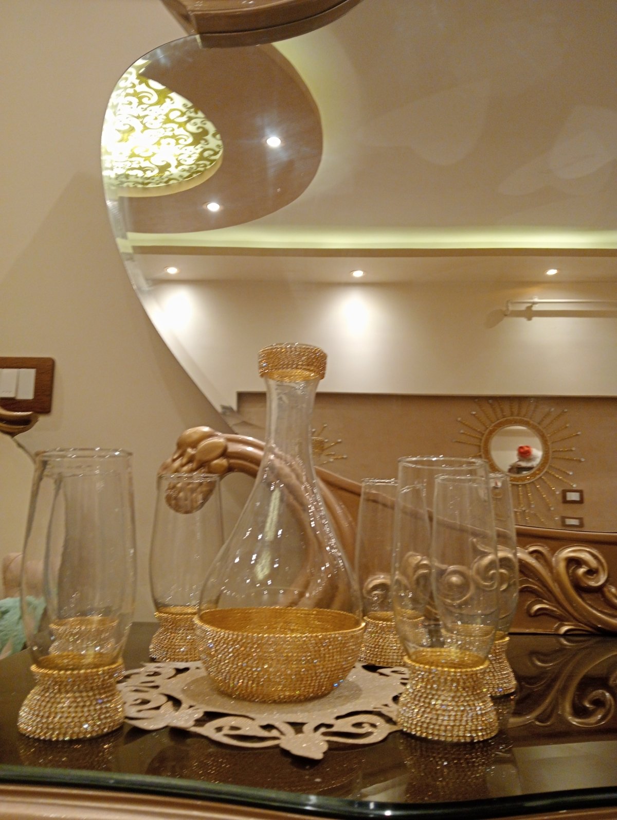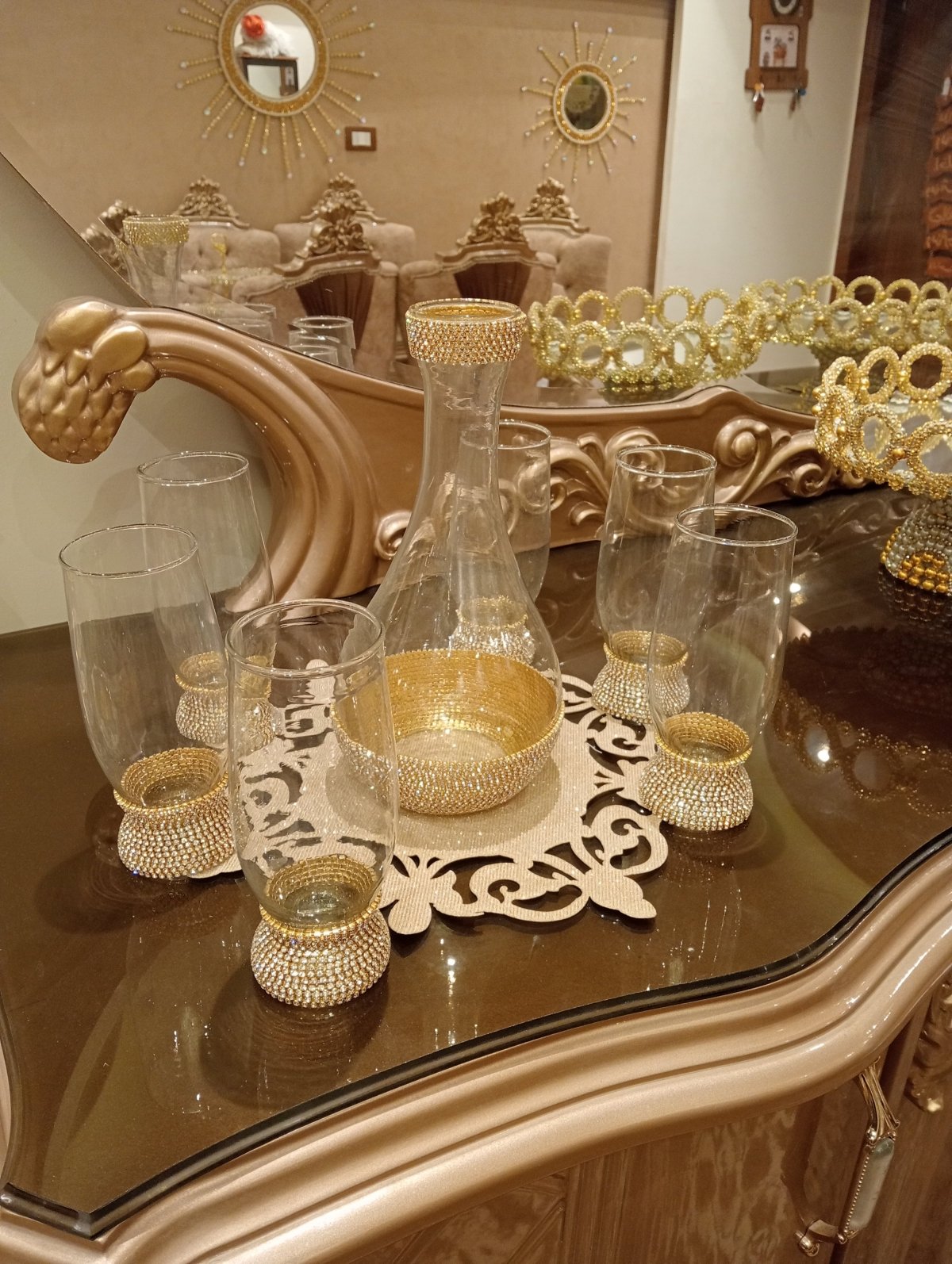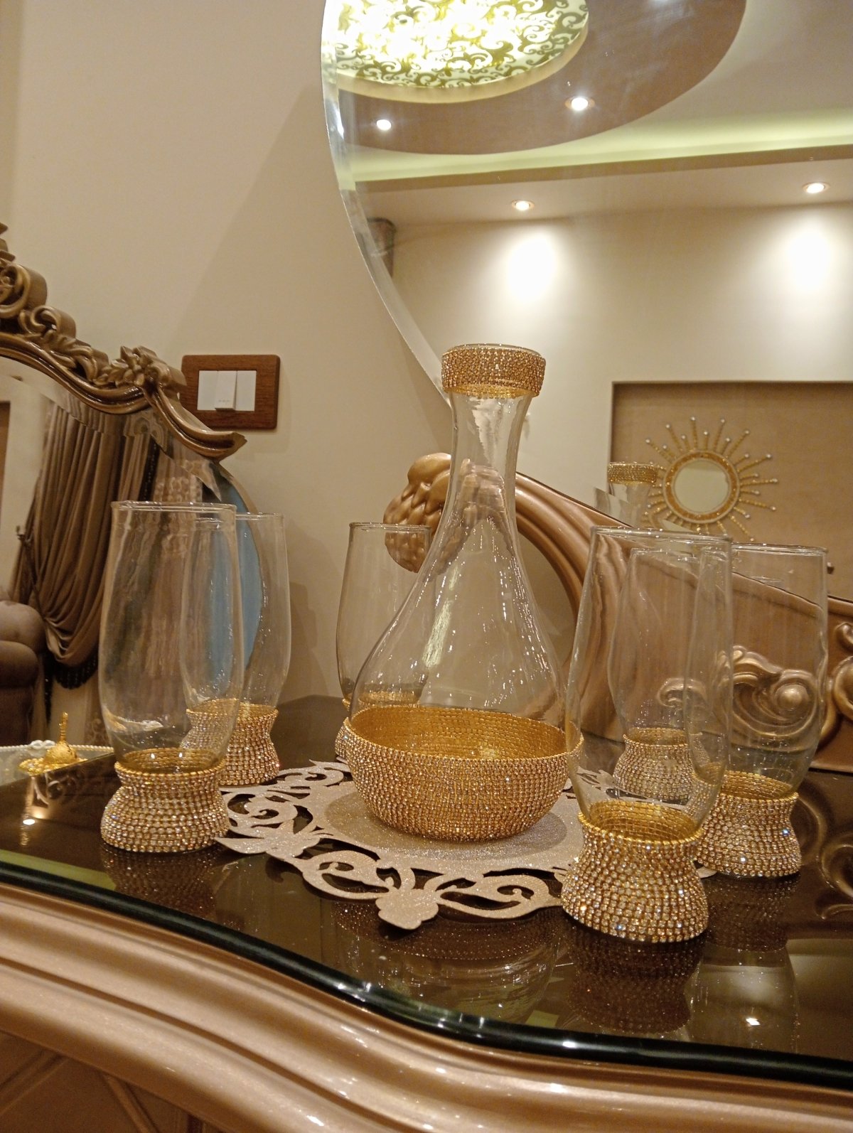 Sherbet set for use and decoration 7 pieces 6 cups and a jug Royal design studded with diamond branches to give the pieces a shiny, luminous character that catches the eye and dazzles the eyes