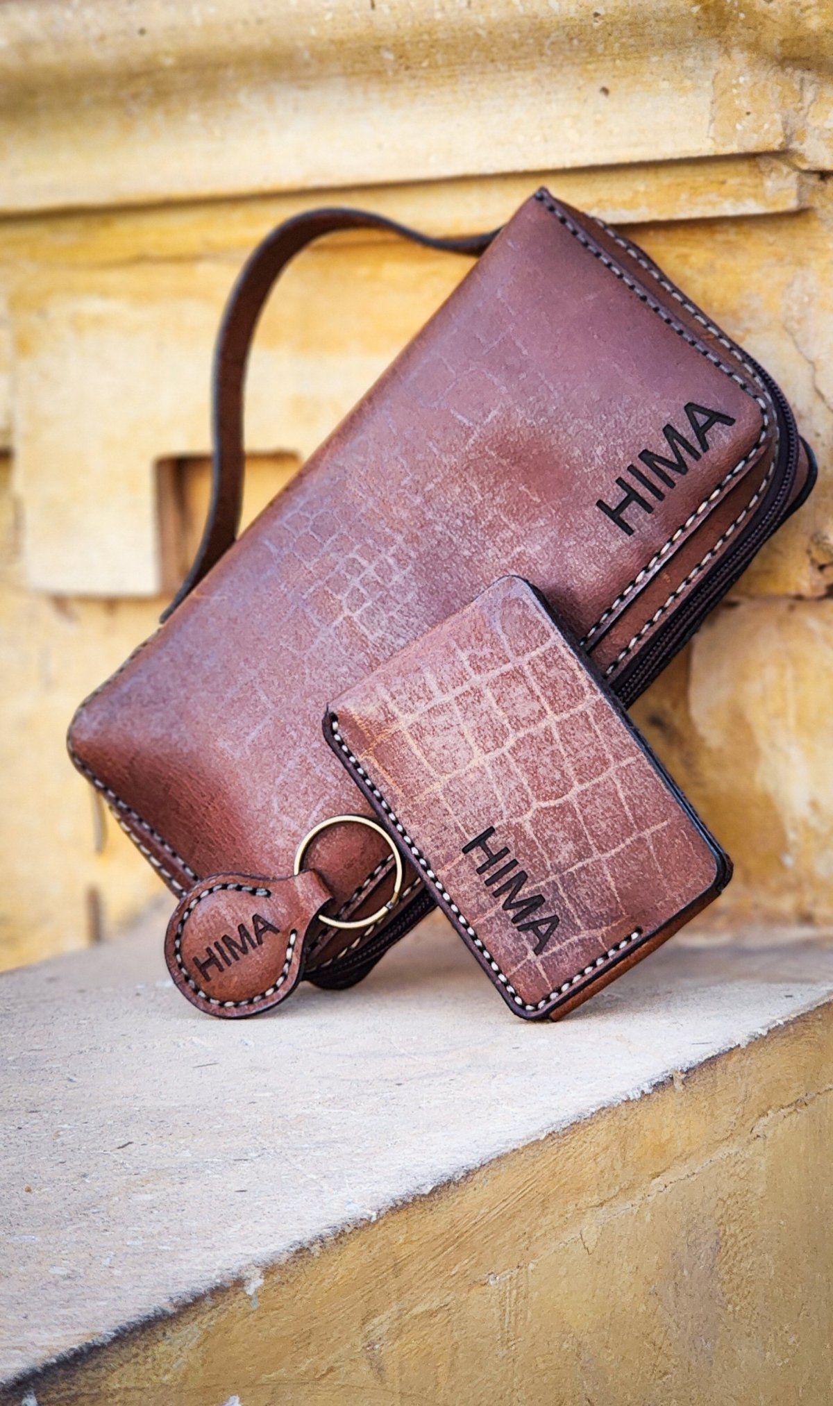 Handmade men's handbag with a mobile phone pocket and a card pocket. It can be made in the color that suits the customer.