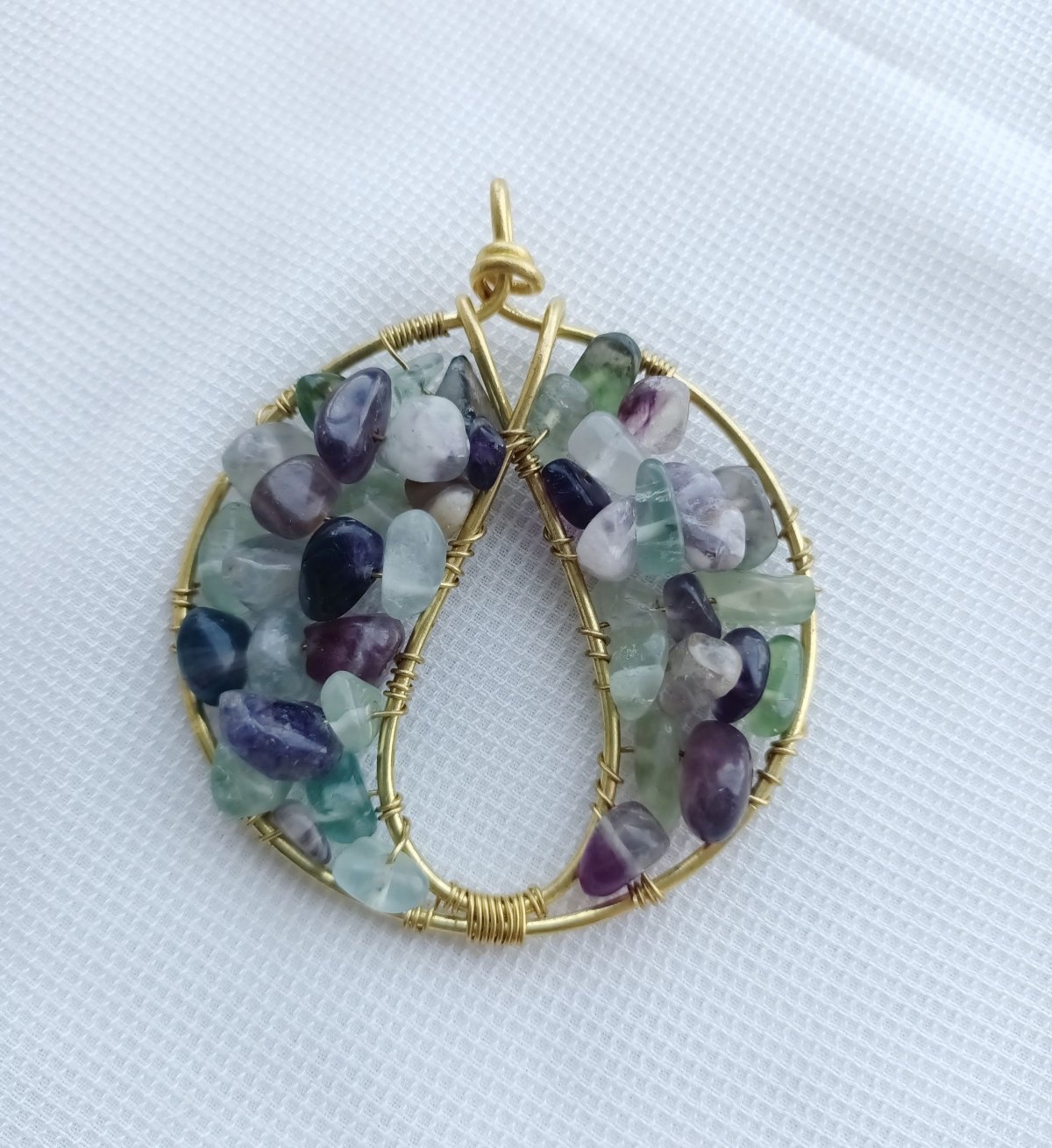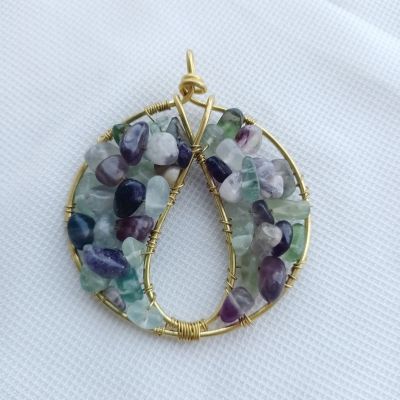 Copper wire handmade pandant with natural stones. It's in circle shape.its diameter 5,5 cm.