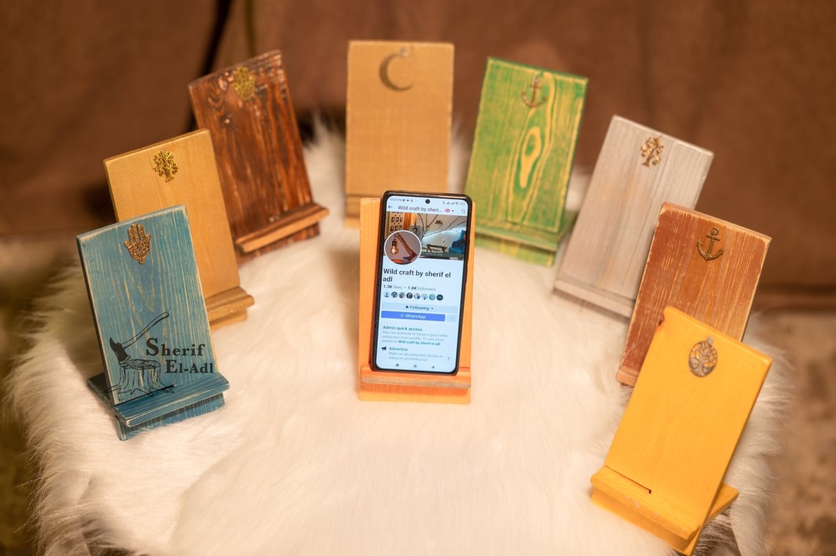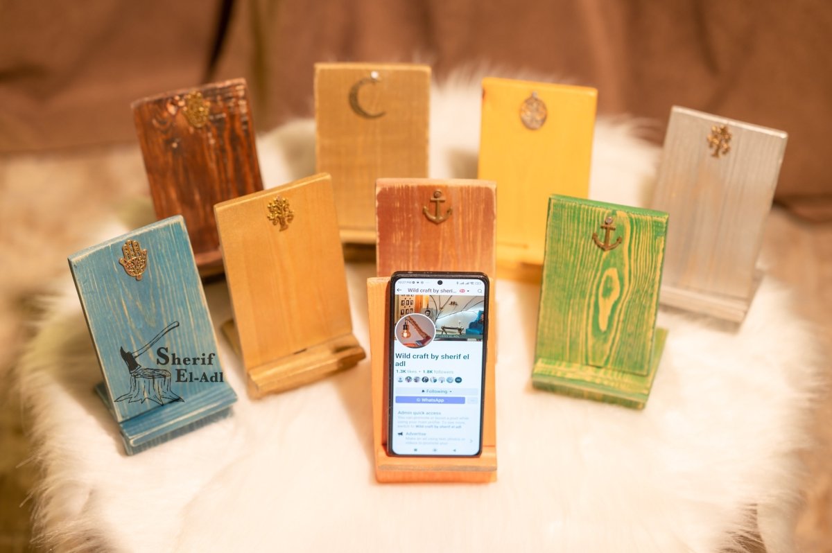 Mobile holder Handmade wood Inlaid with accessories Different colors