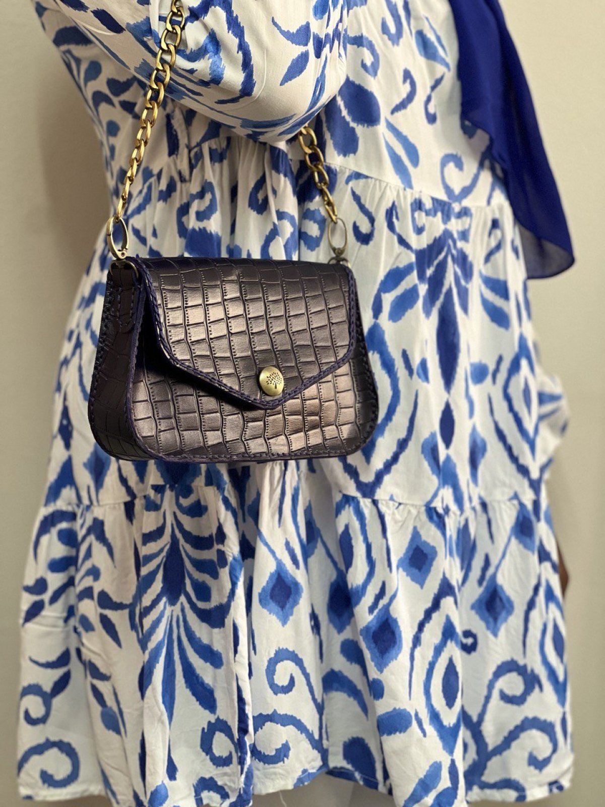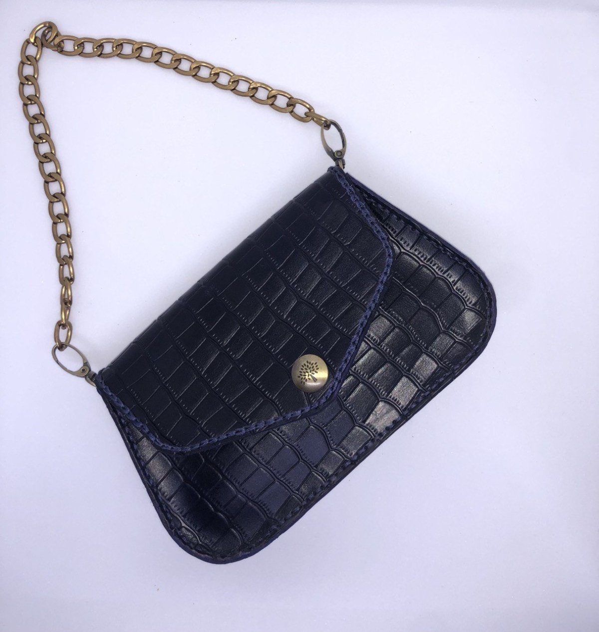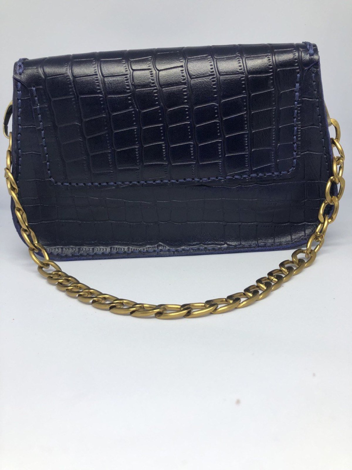 A trendy small size clutch made of natural leather with high quality with design suited to formal graduations. Dimensions: (21 * 13 * 4) cm Suitable for carrying your mobile phone and small wallet or your basic crop color : Dark blue