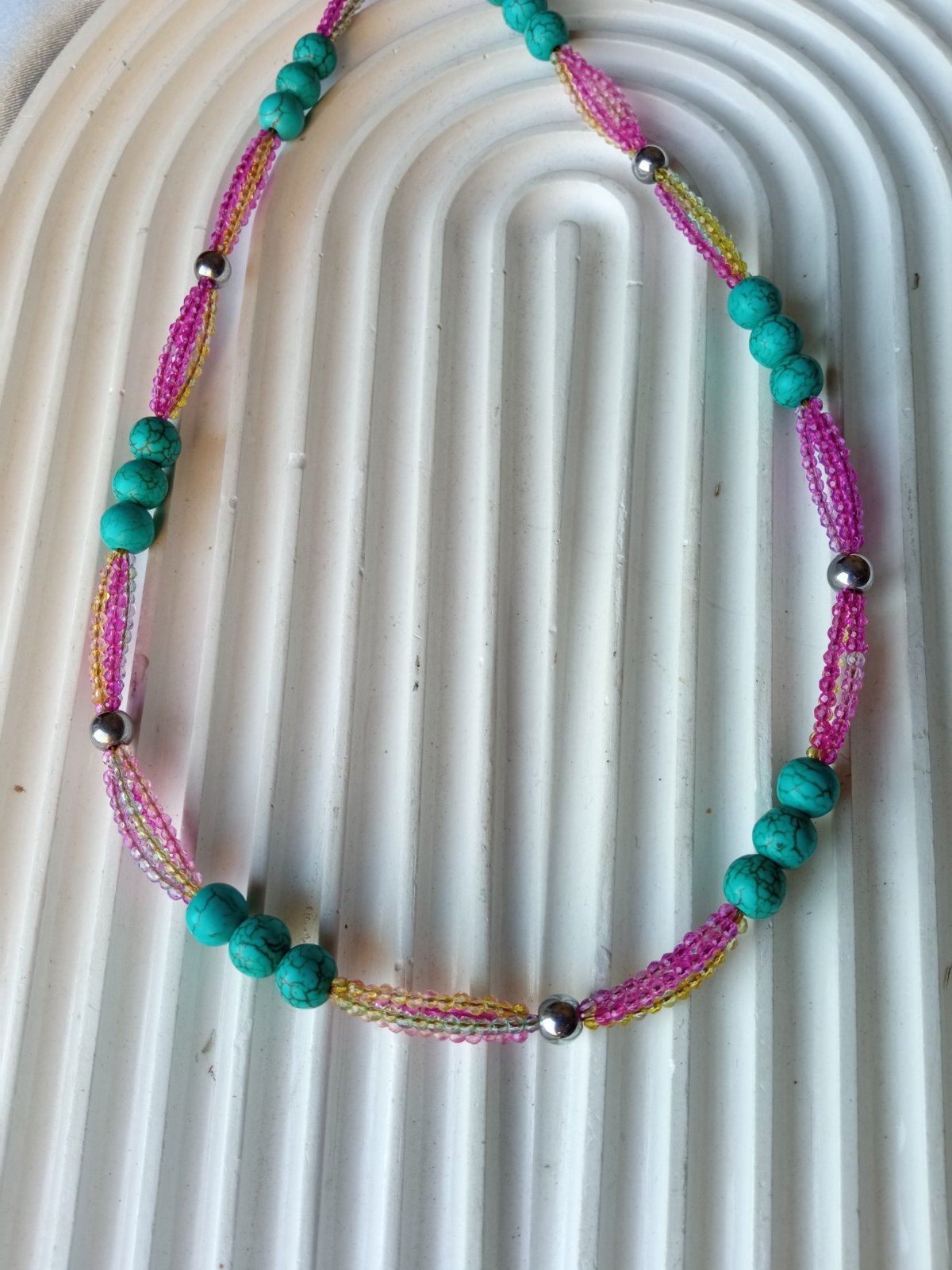 Turquoise necklace with colorful crystal stones and hematite spacers Necklace Length is 61cm