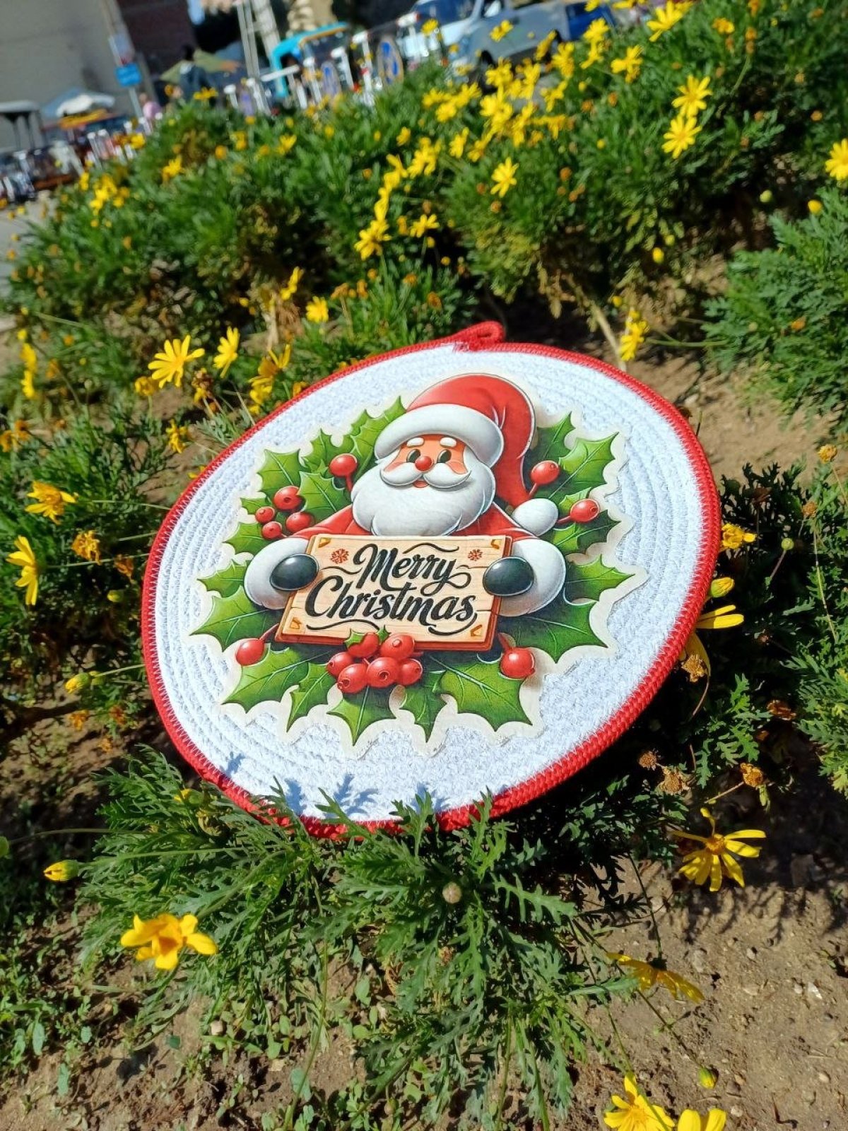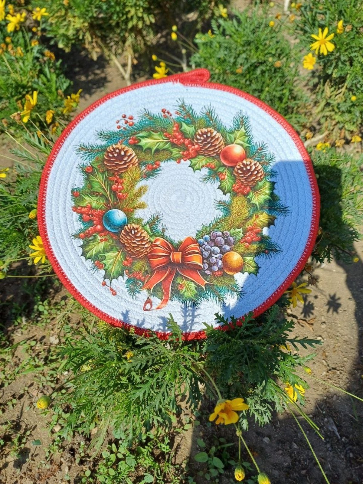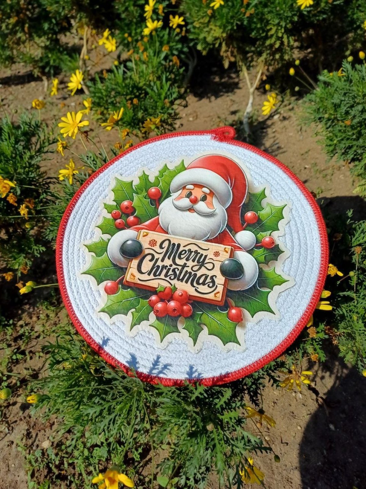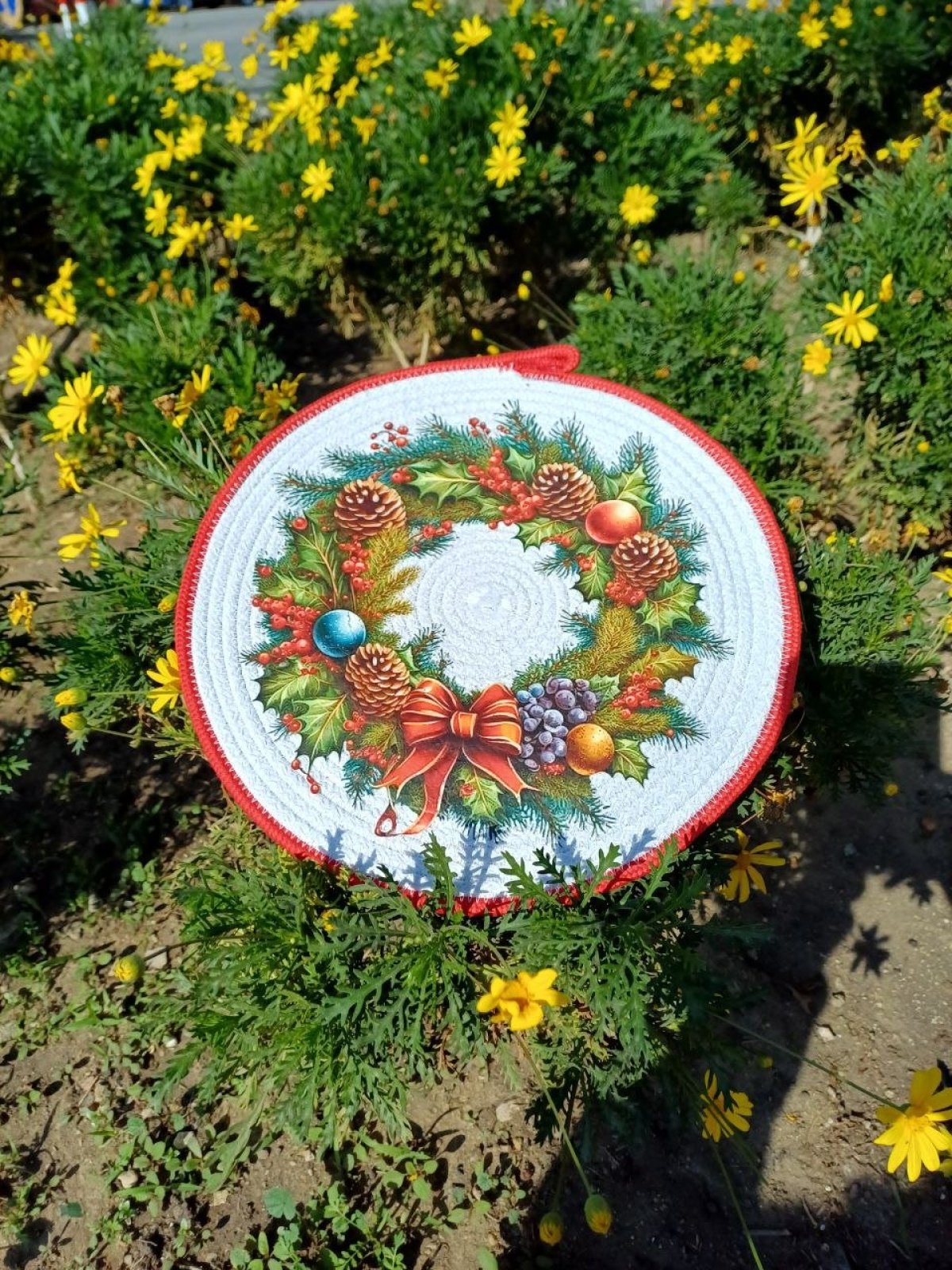 Christmas Coaster Made from eco-friendly natural cotton ropes. Dimensions: 30 cm.